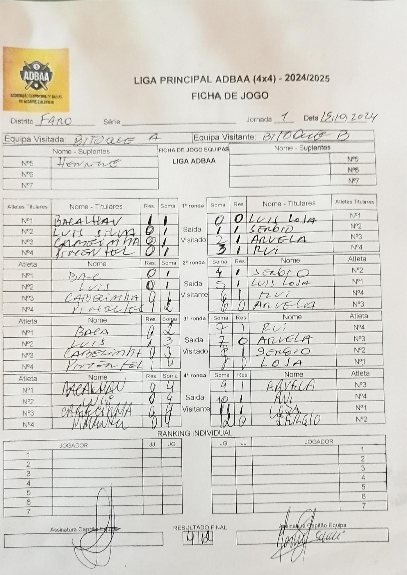 1 | 4 | BAR BITOQUE A | 4-12 | BAR BITOQUE B | 15/10/2024 | <Sem observações>