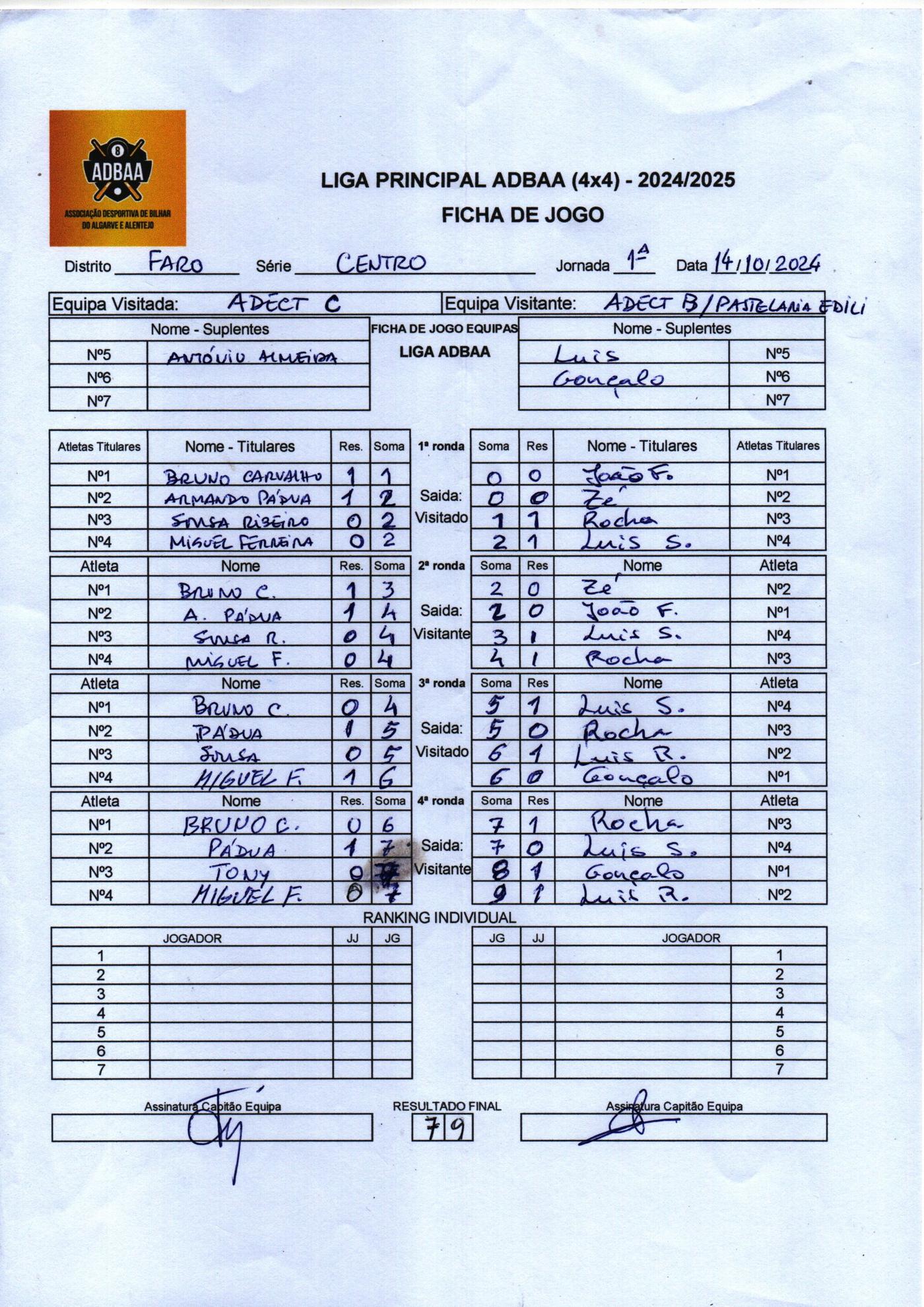 1 | 1 | ADECT C | 7-9 | ADECT B/ PASTELARIA EDILI | 14/10/2024 | <Sem observações>