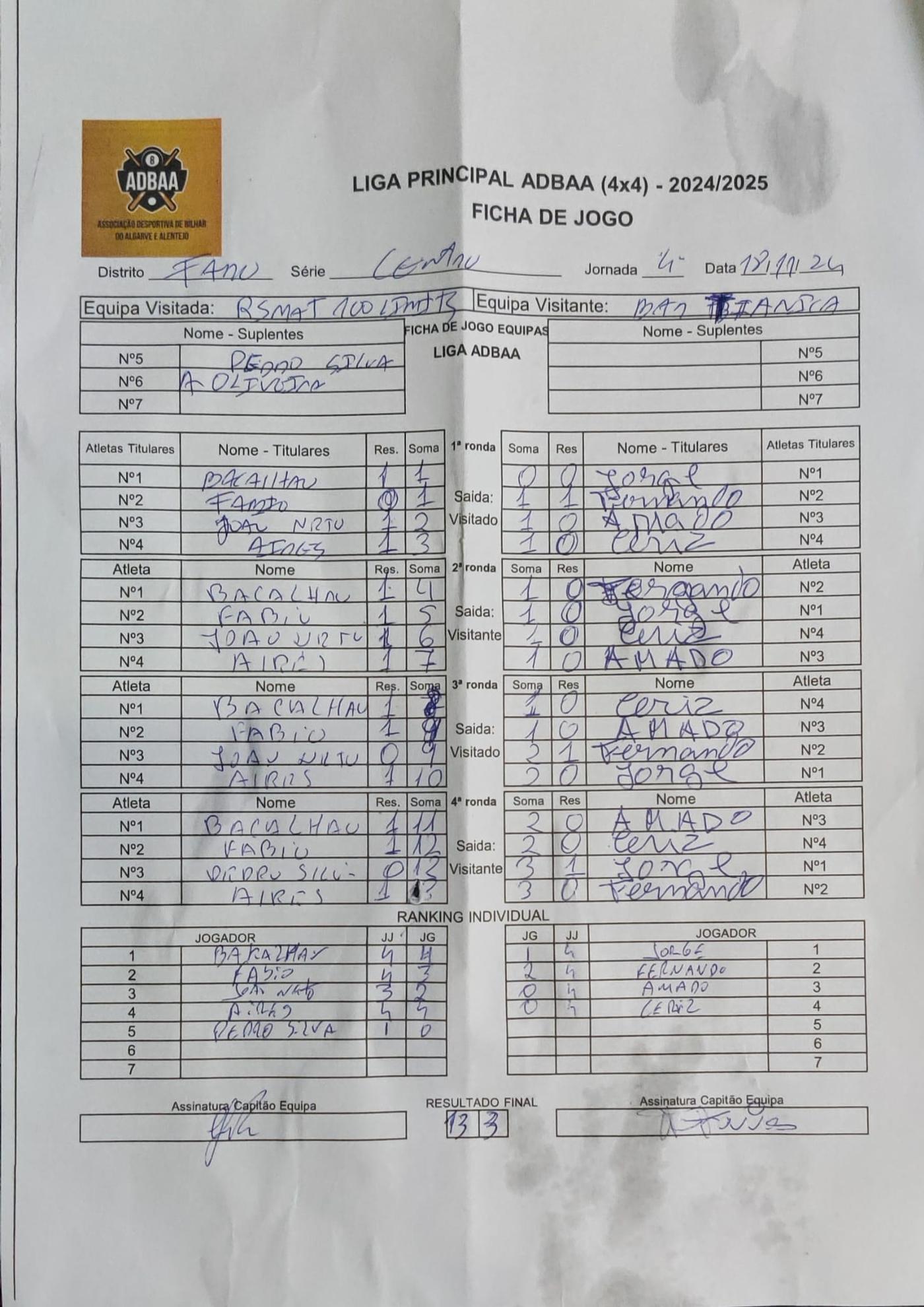 5 | 21 | BAR BITOQUE A | 5-11 | RSMAT 100 LIMITES | 26/11/2024 | <Sem observações>