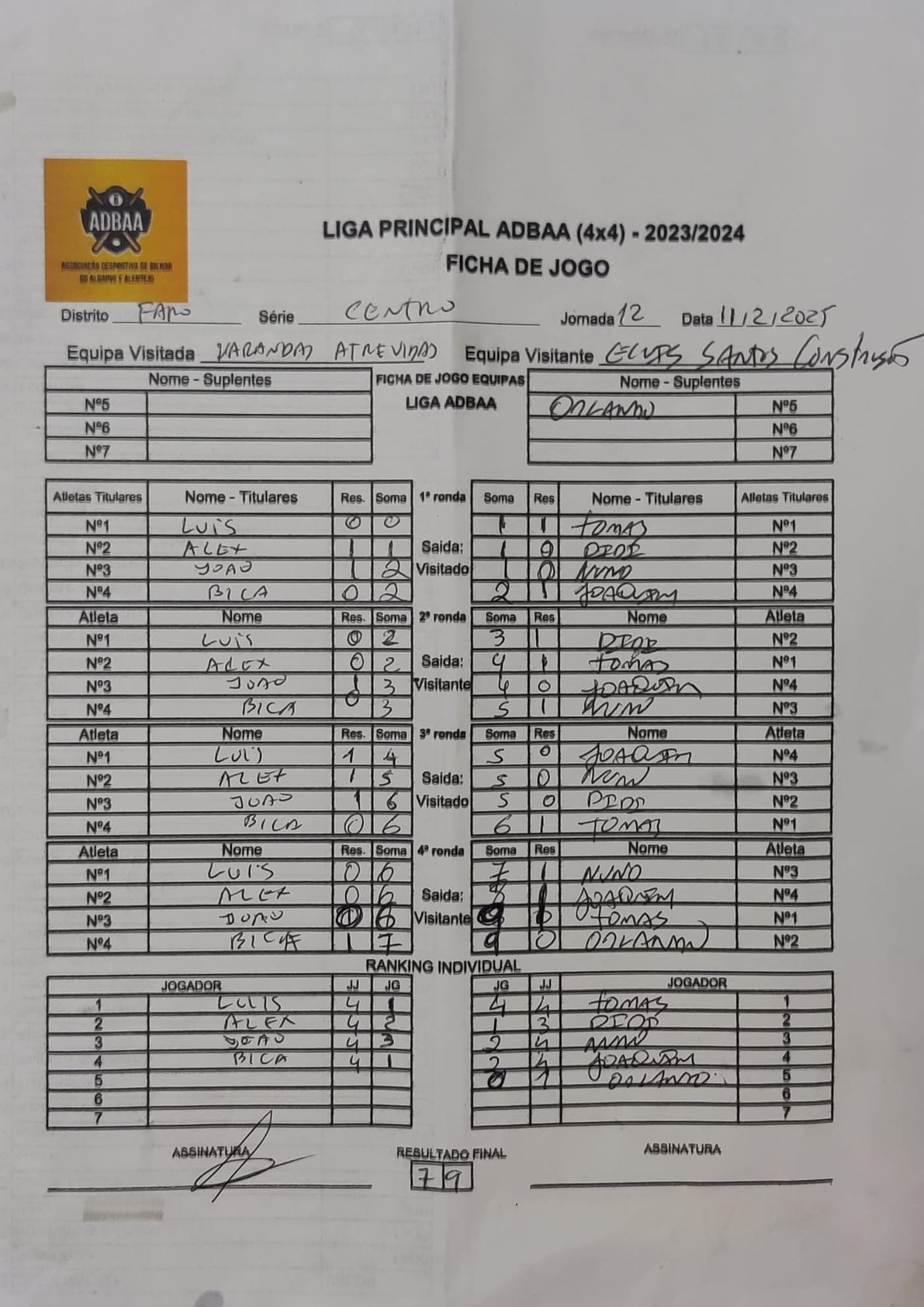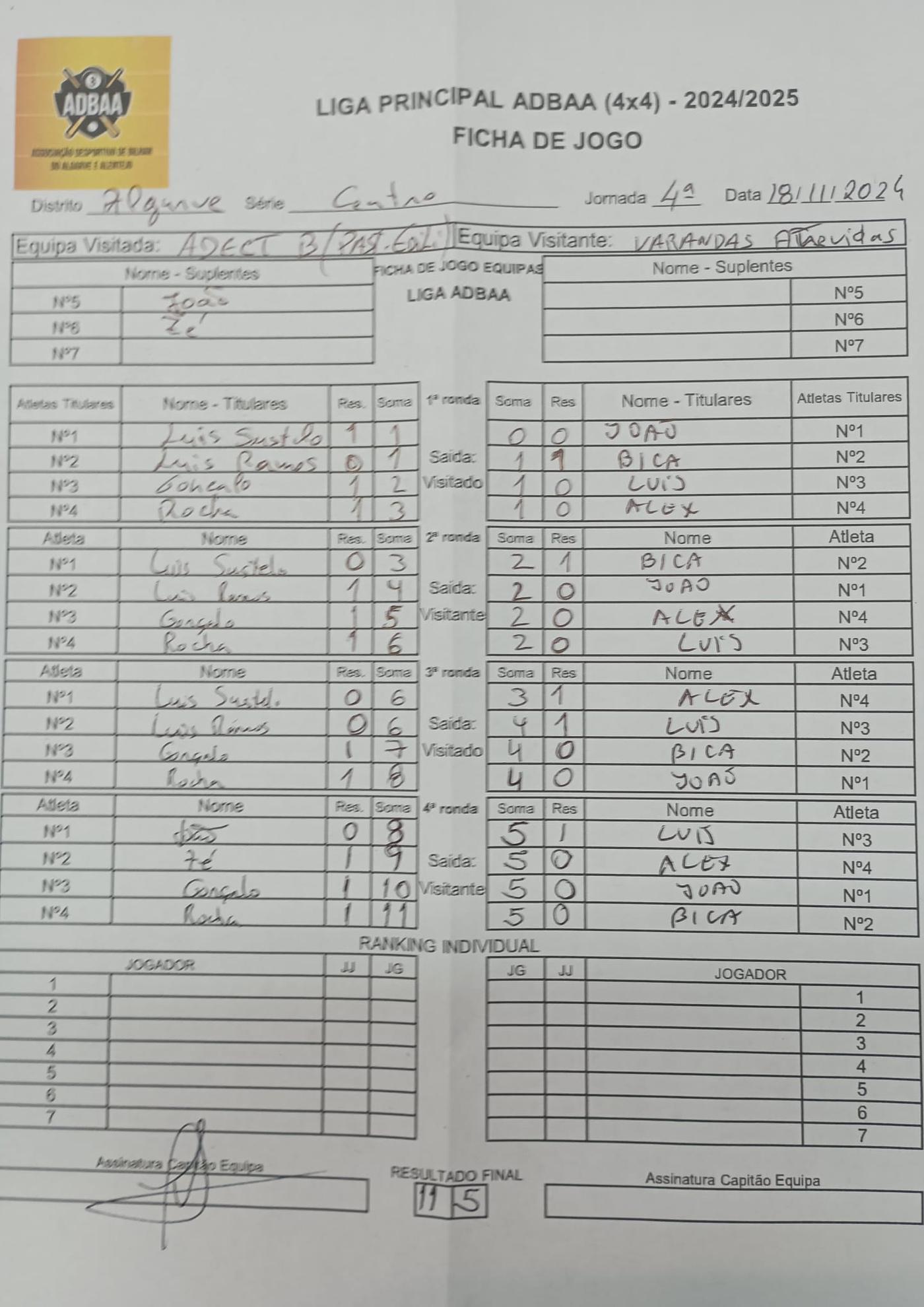 4 | 18 | ADECT B/ PASTELARIA EDILI | 11-5 | 100 LIMITES VARANDAS ATREVIDAS | 18/11/2024 | <Sem observações>