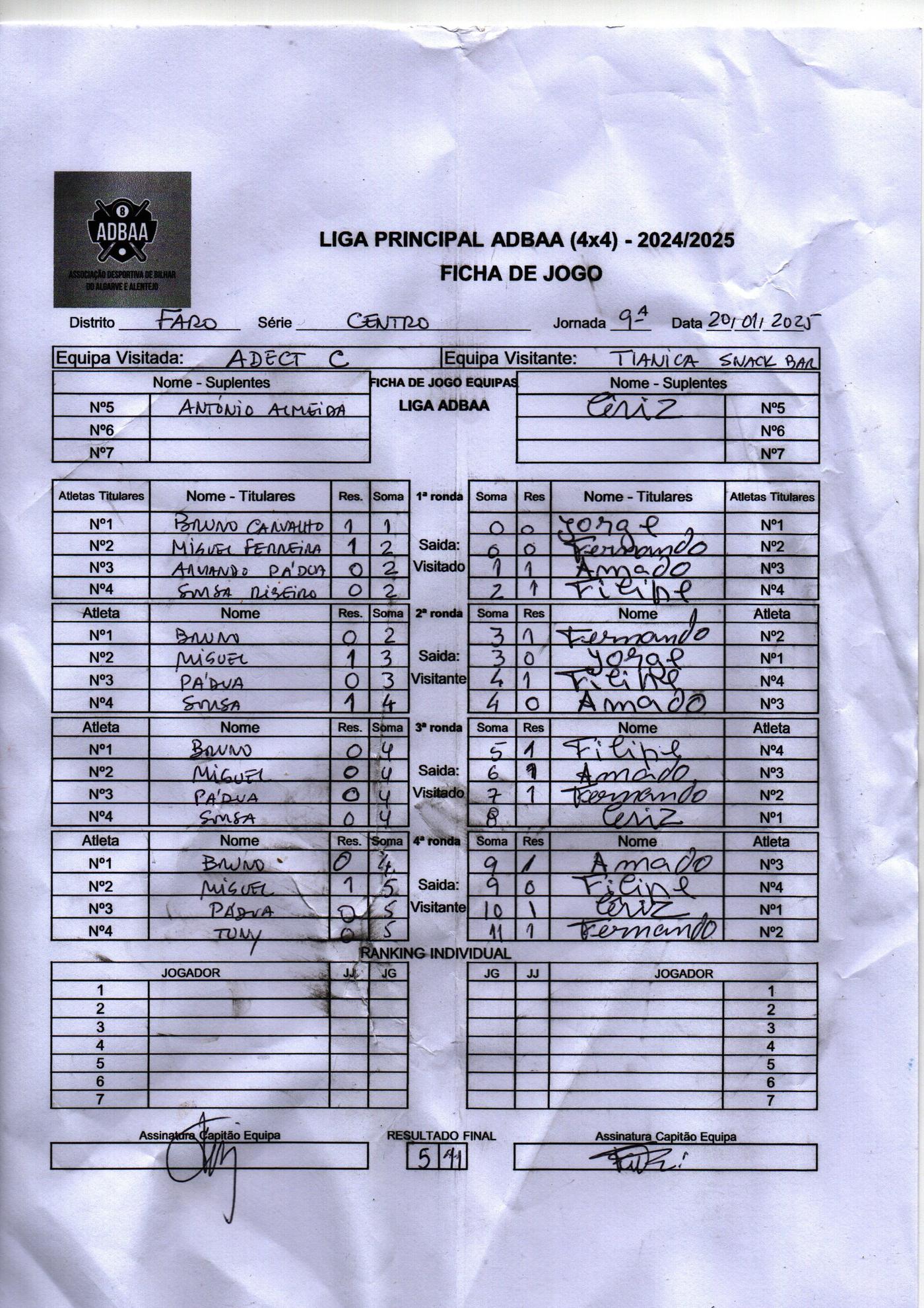 9 | 43 | BAR BITOQUE A | 15-1 | ADECT JOVEM | 21/01/2025 | <Sem observações>