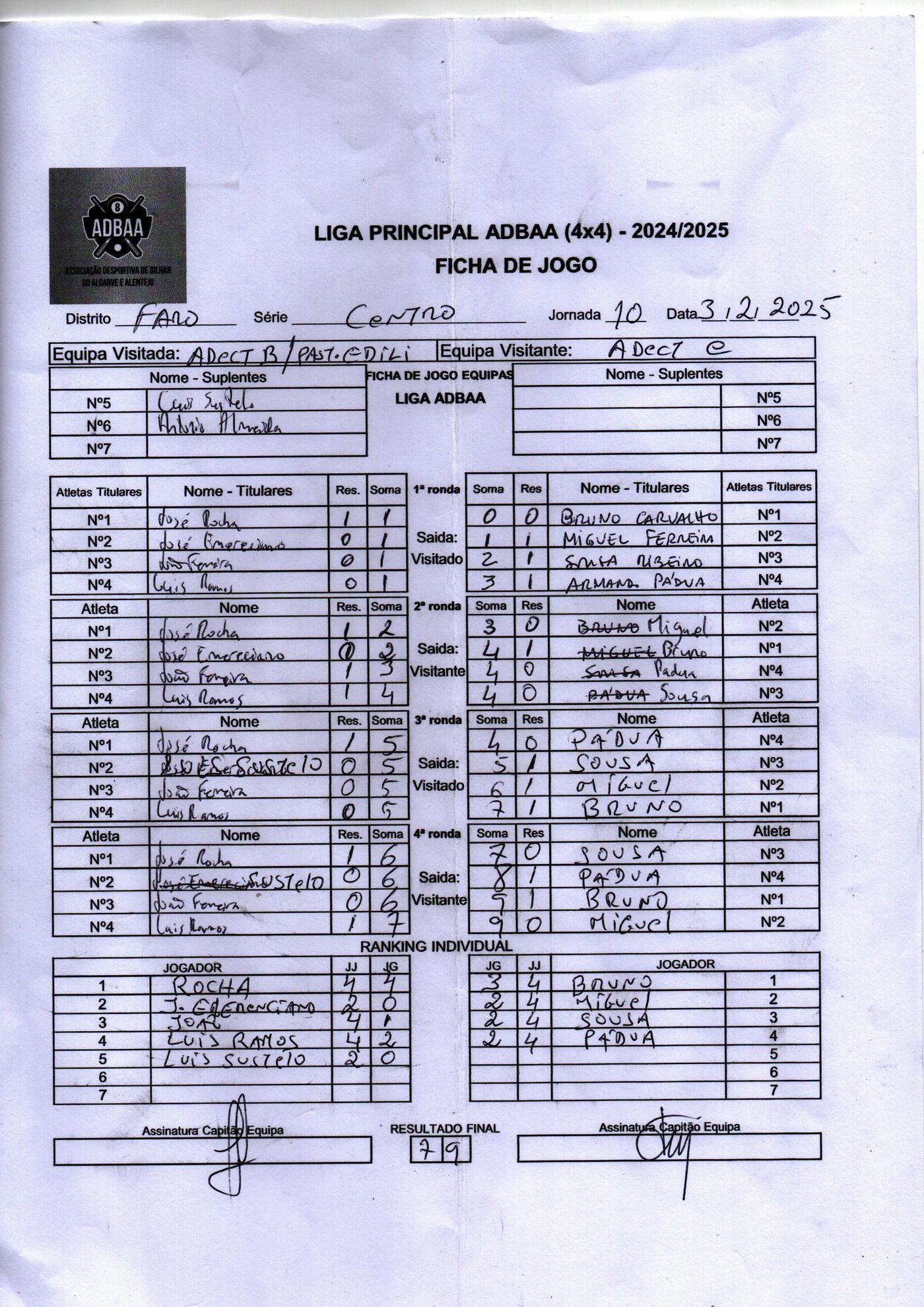 10 | 46 | ADECT B/ PASTELARIA EDILI | 7-9 | ADECT C | 03/02/2025 | <Sem observações>