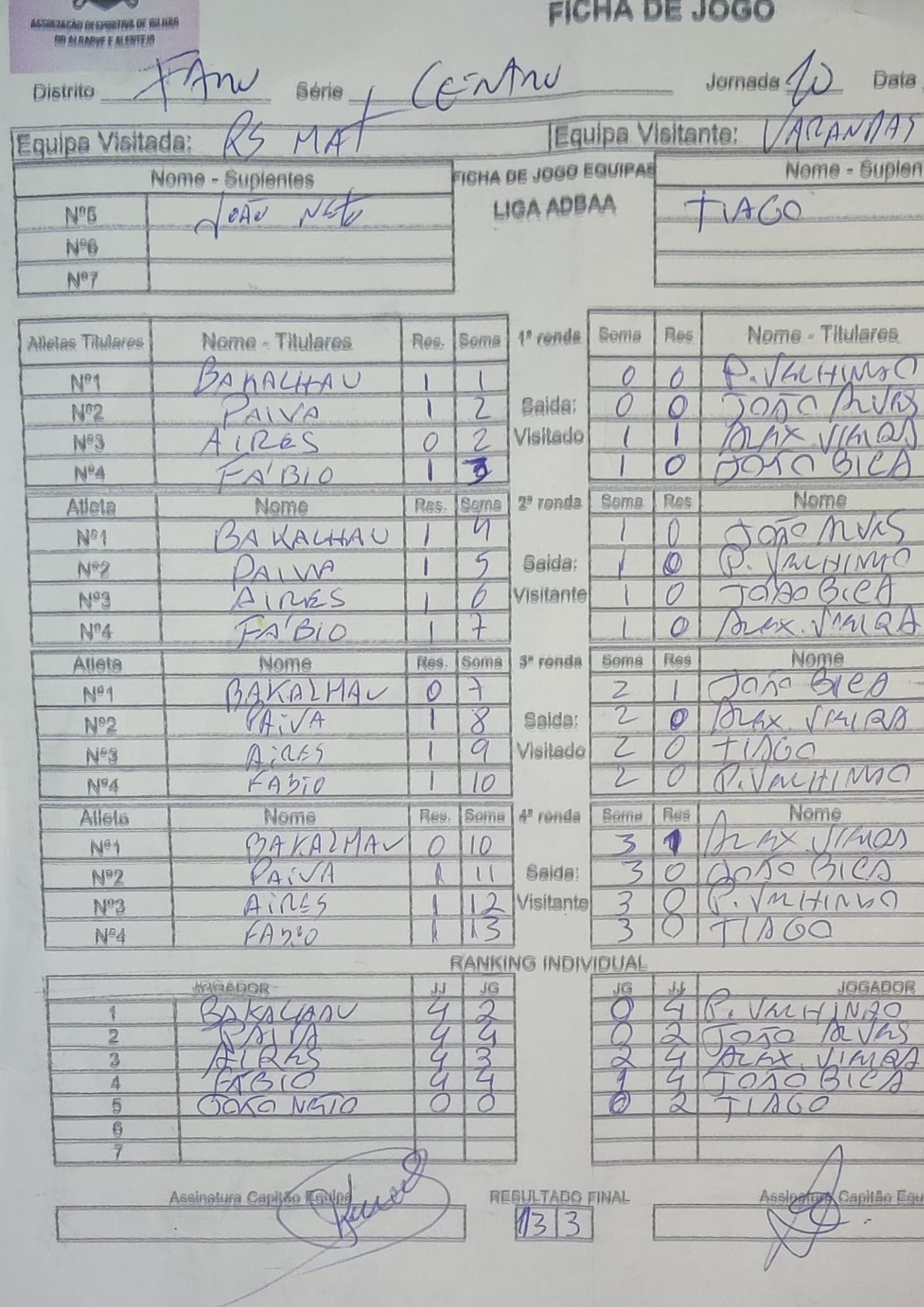 13 | 64 | SNACK BAR TIANICA | 7-9 | RSMAT 100 LIMITES | 10/03/2025 | <Sem observações>