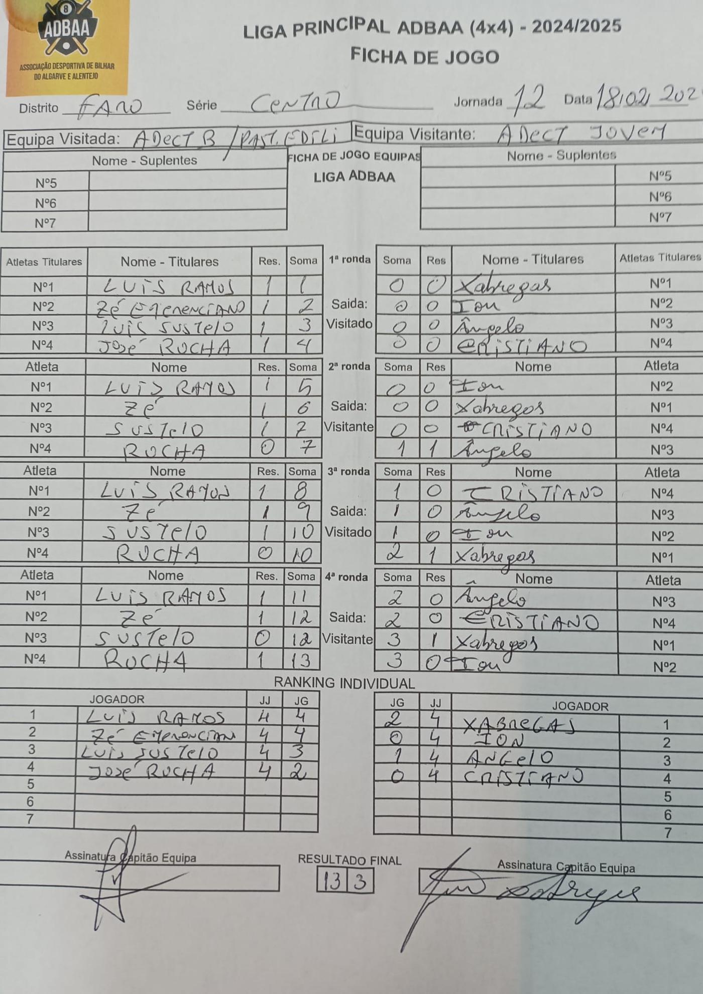 12 | 58 | ADECT B/ PASTELARIA EDILI | 13-3 | ADECT JOVEM | 18/02/2025 | <Sem observações>