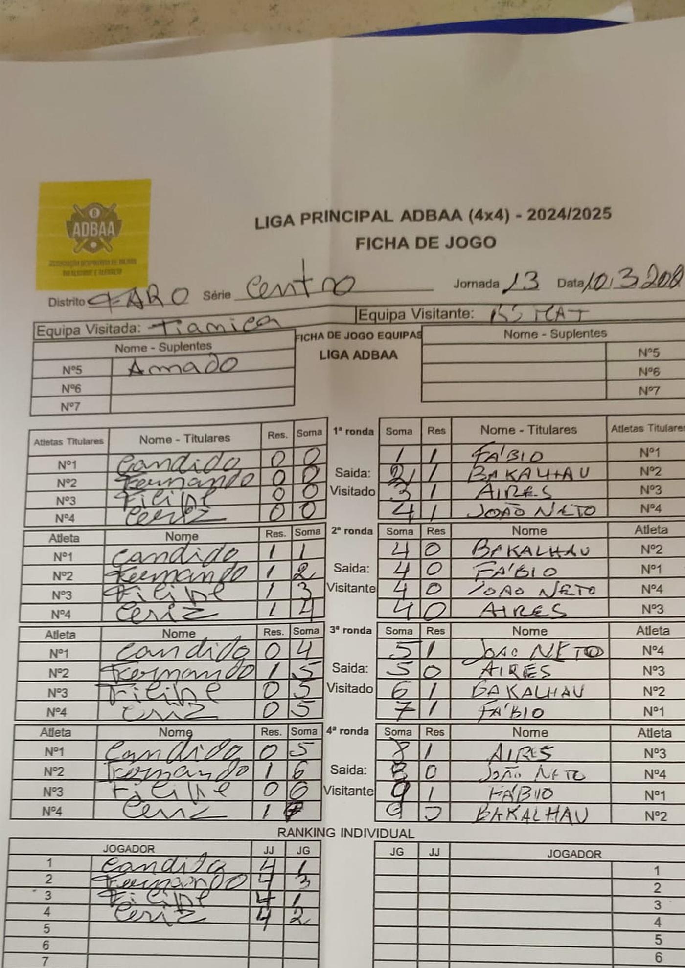 13 | 63 | 100 LIMITES VARANDAS ATREVIDAS | 9-7 | ADECT B/ PASTELARIA EDILI | 11/03/2025 | <Sem observações>