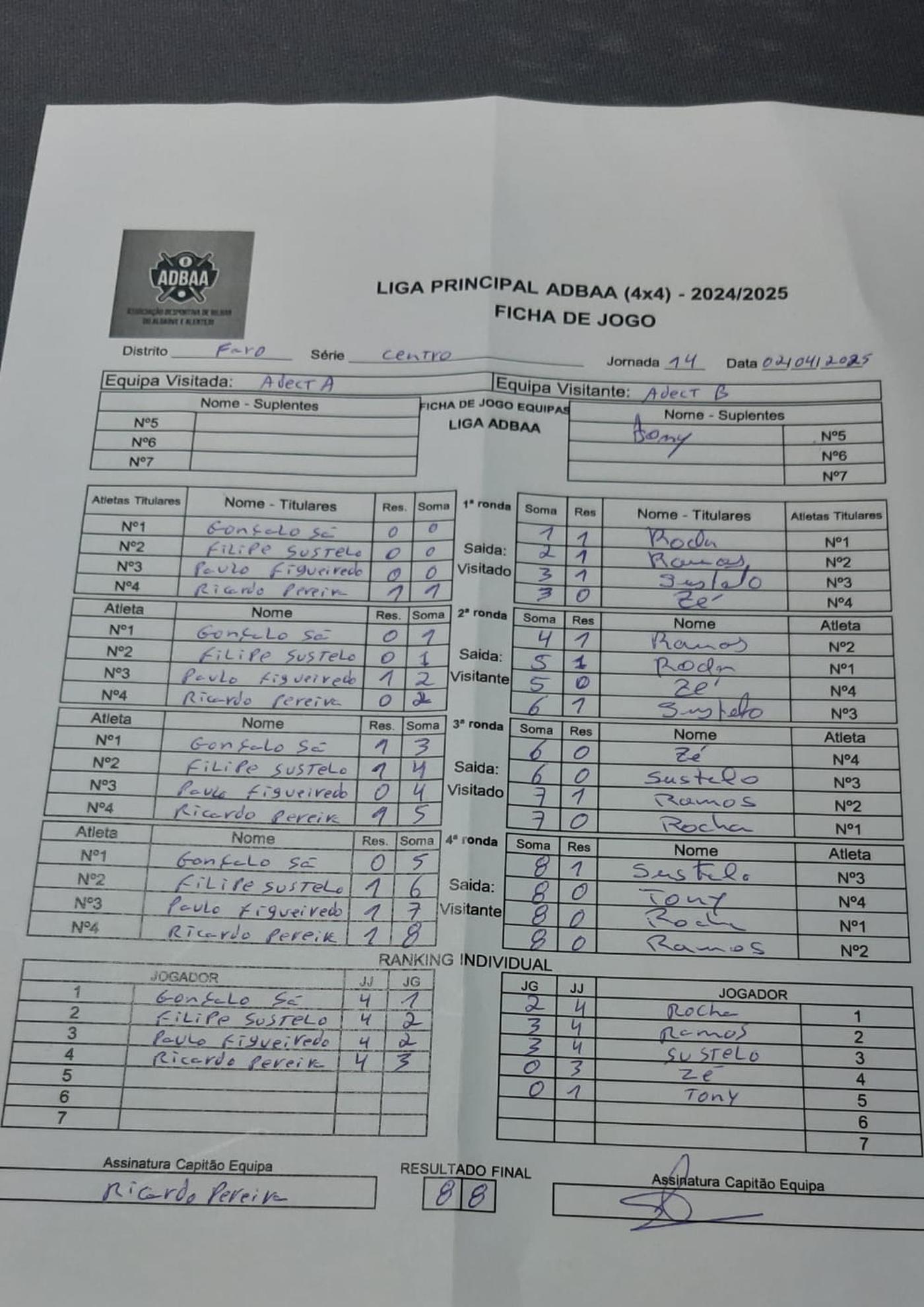 14 | 70 | ADECT A | 8-8 | ADECT B/ PASTELARIA EDILI | 02/04/2025 | <Sem observações>
