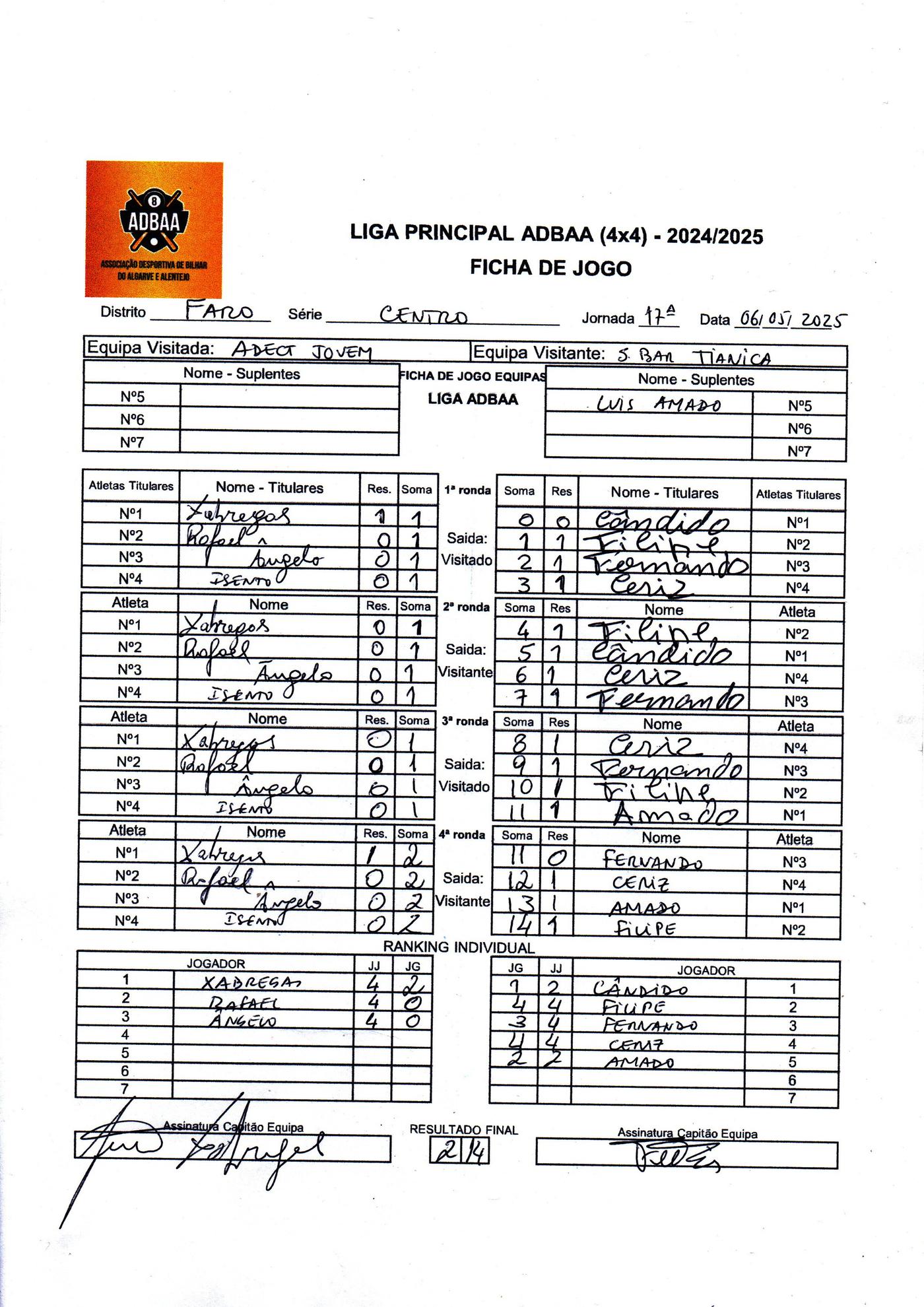 17 | 82 | ADECT JOVEM | 2-14 | SNACK BAR TIANICA | 06/05/2025 | <Sem observações>