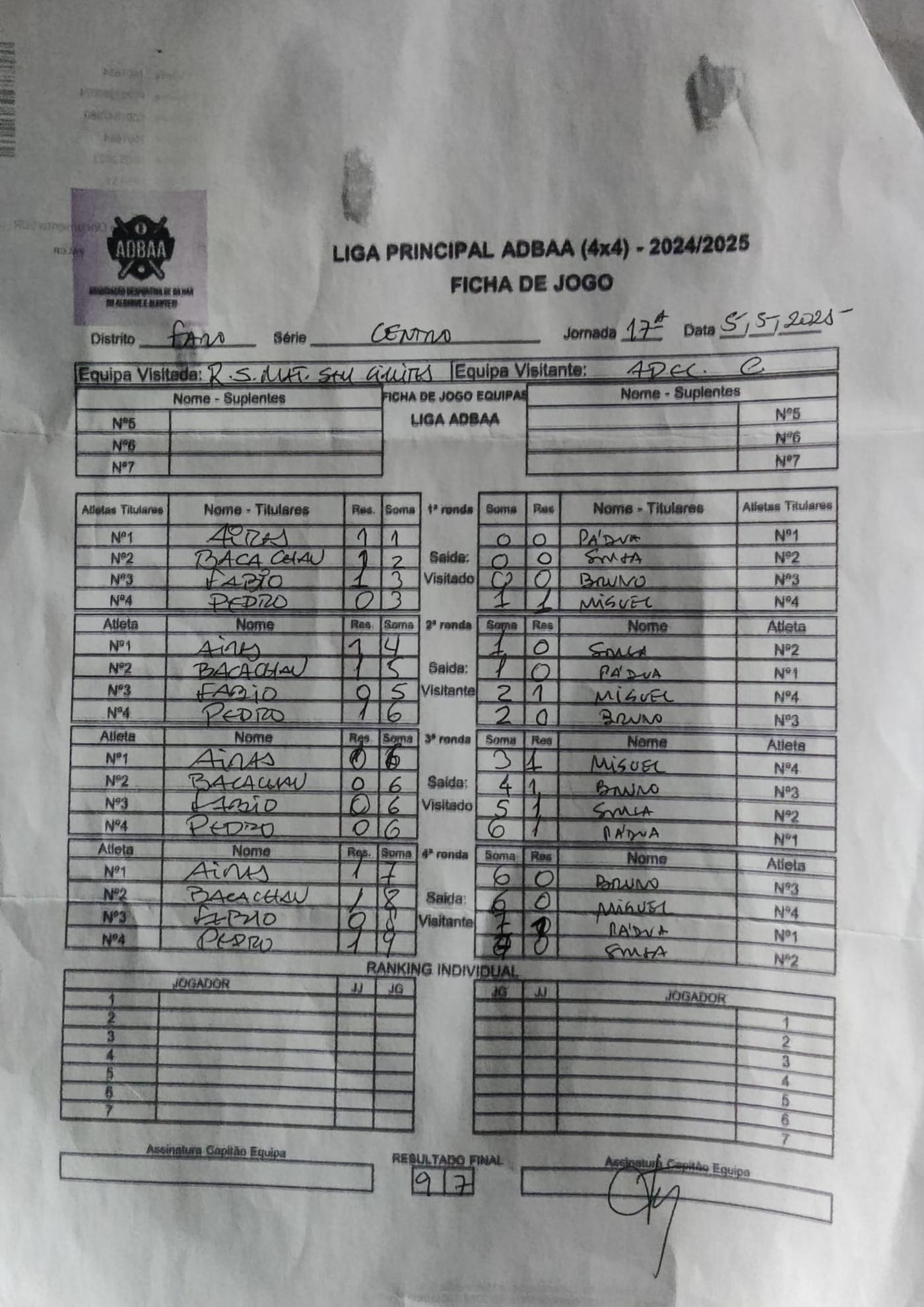 18 | 87 | ADECT B/ PASTELARIA EDILI | 5-11 | RSMAT 100 LIMITES | 12/05/2025 | <Sem observações> |