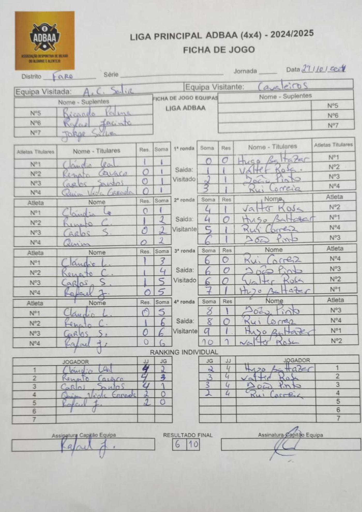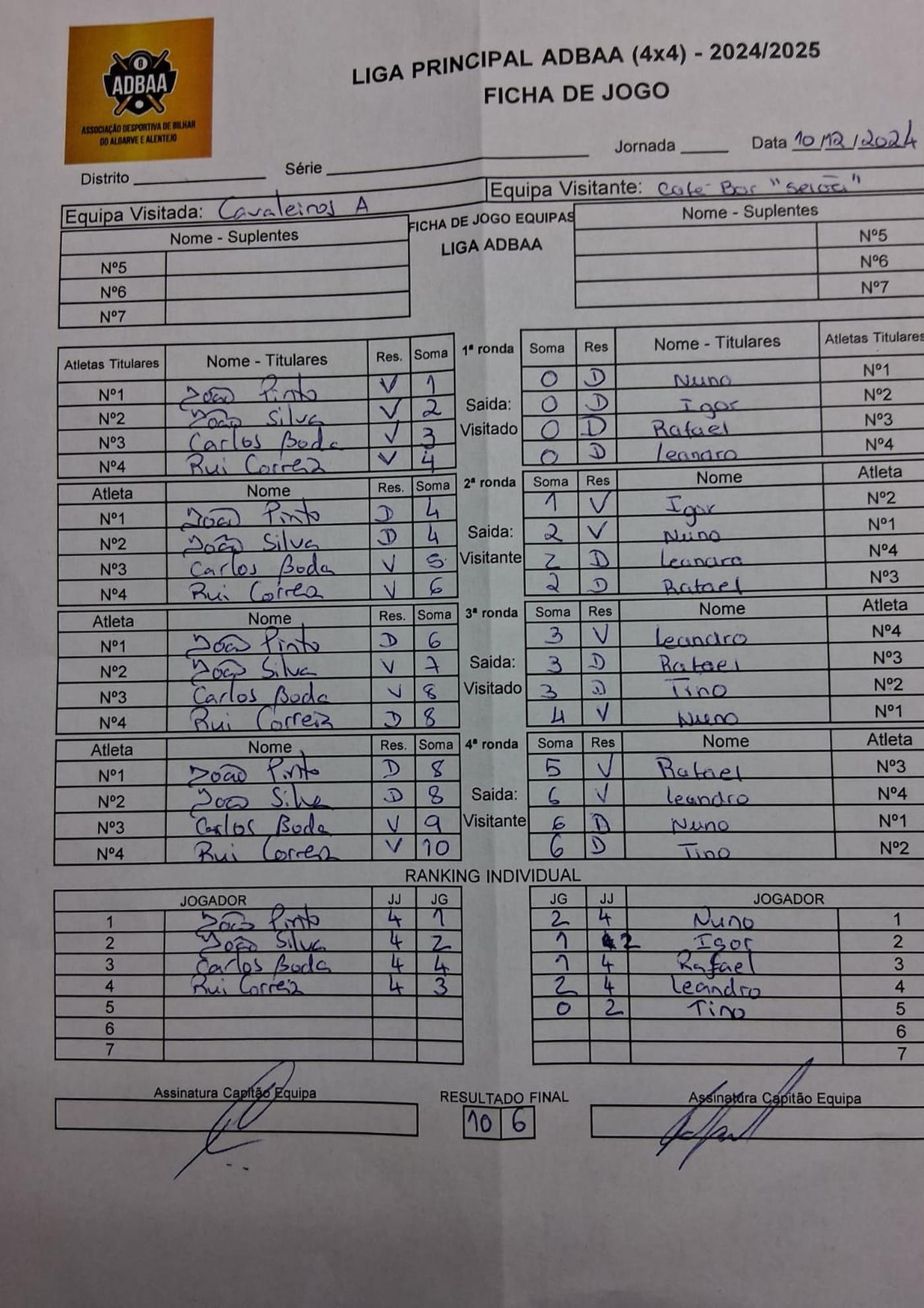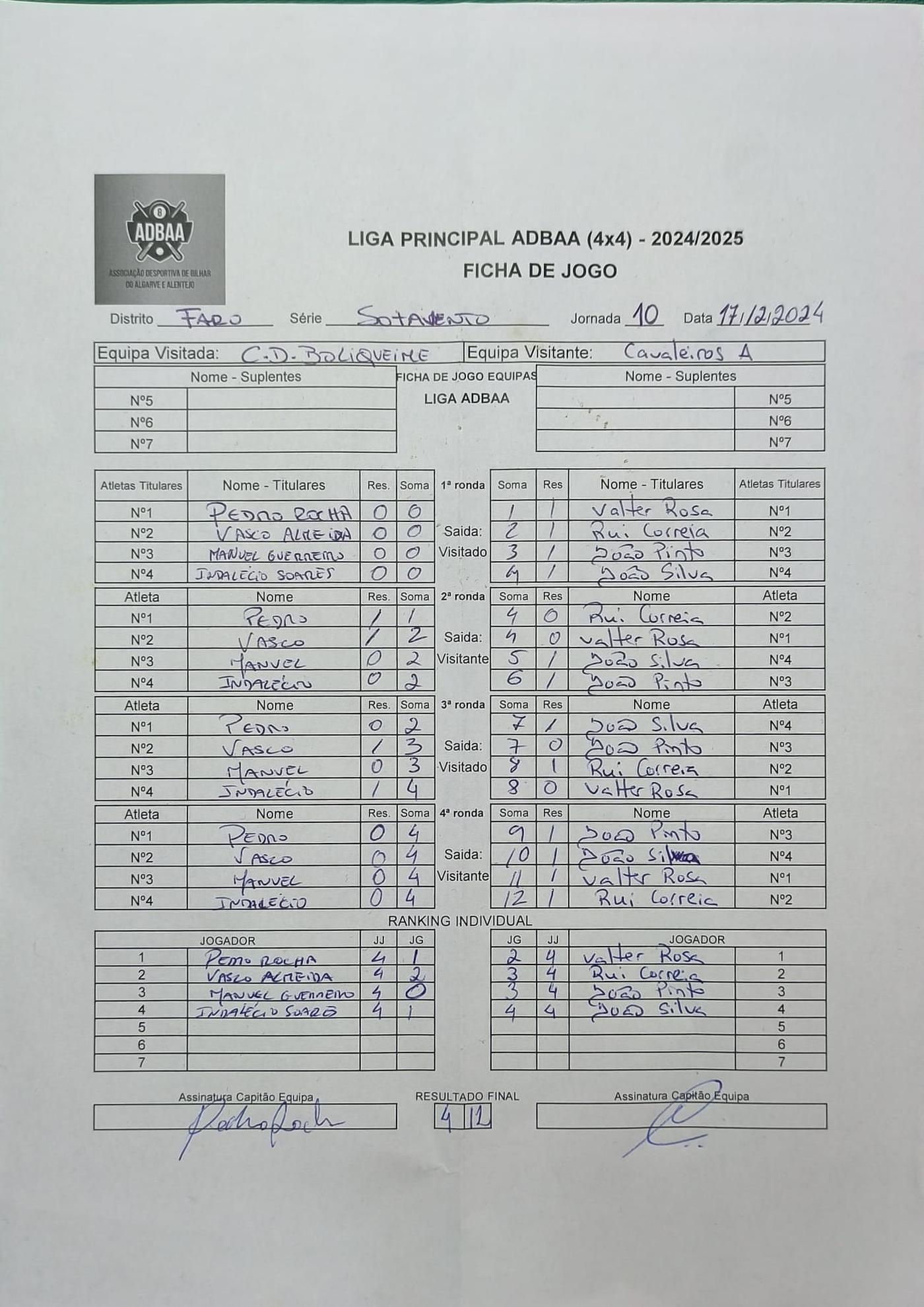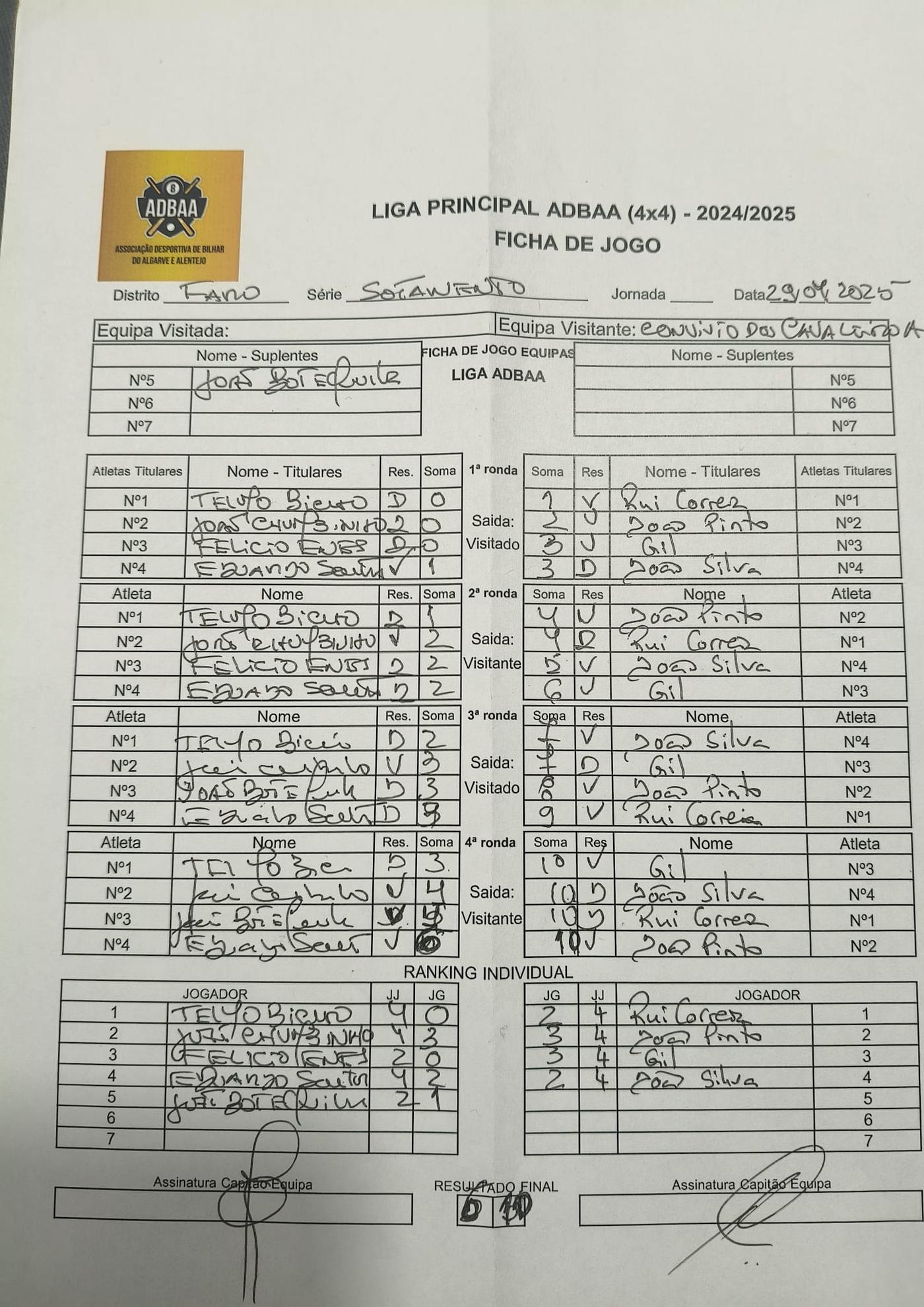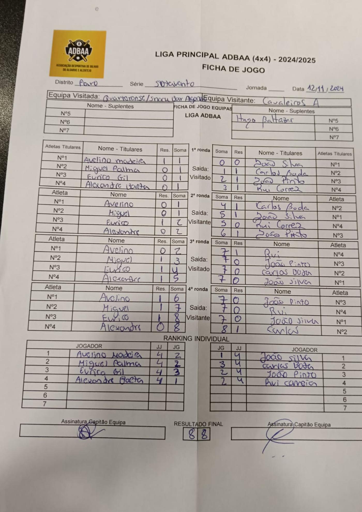 4 | 26 | CONVIVIO DOS CAVALEIROS A | 12-4 | CAP FARO | 05/11/2024 | <Sem observações> |