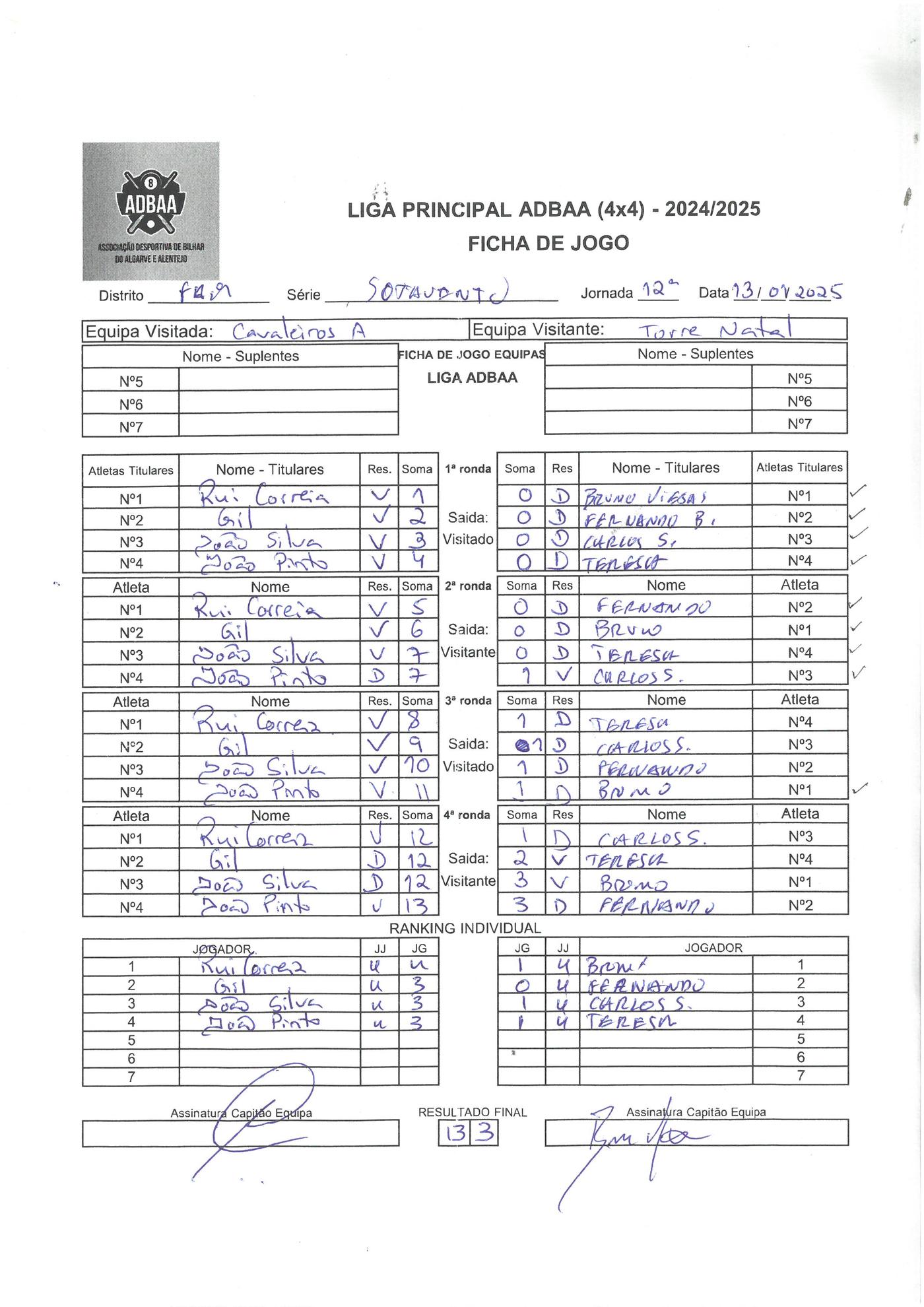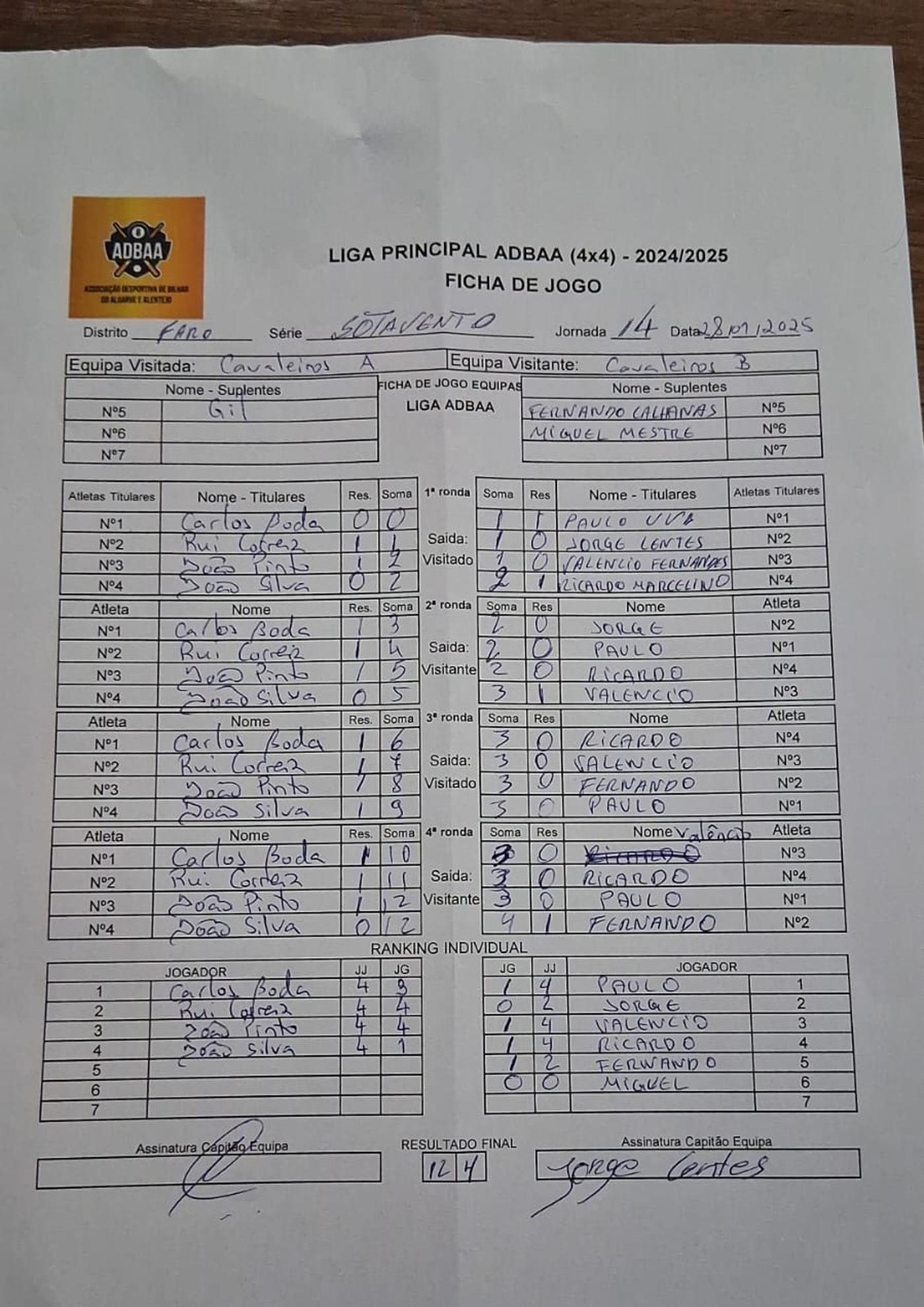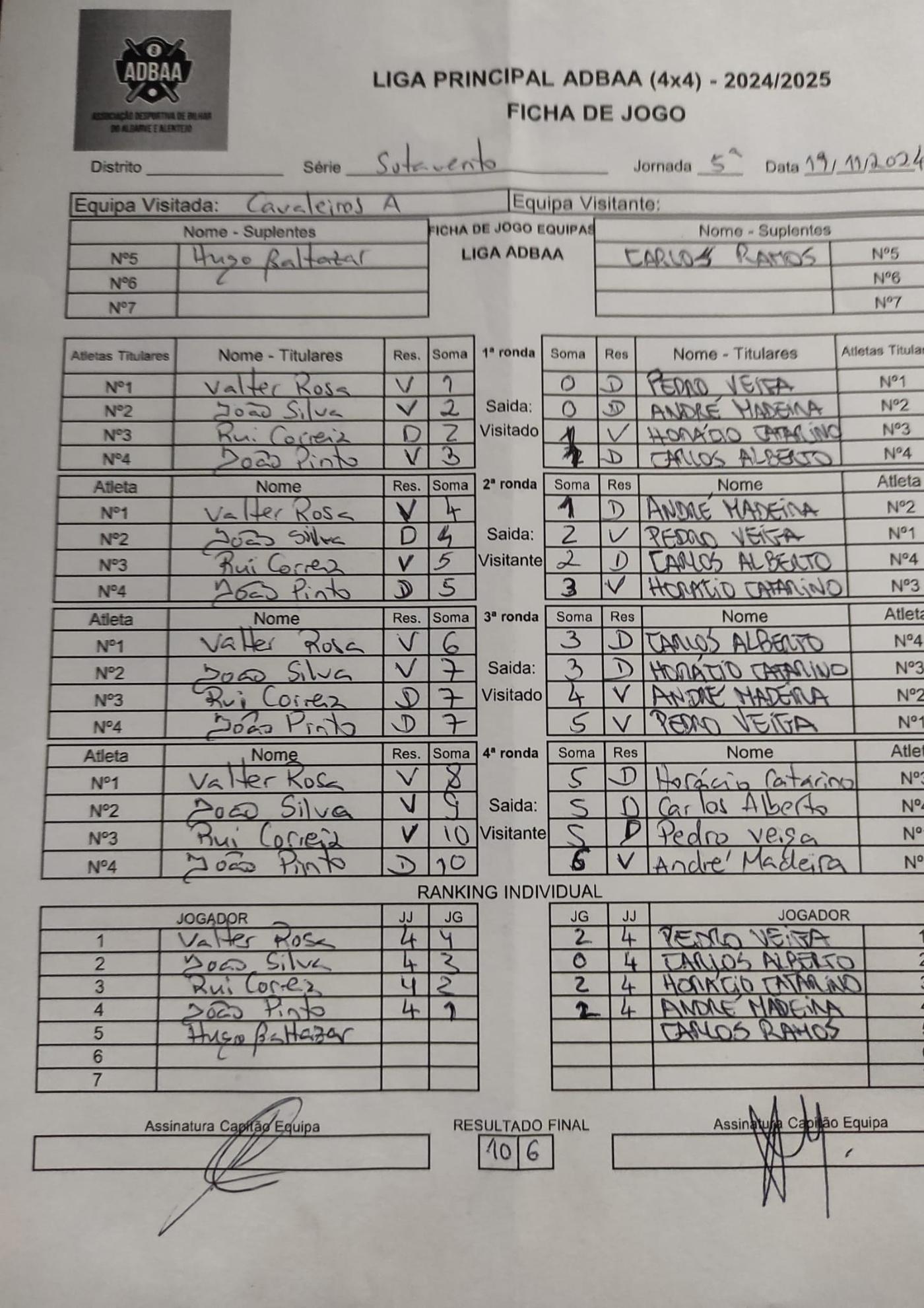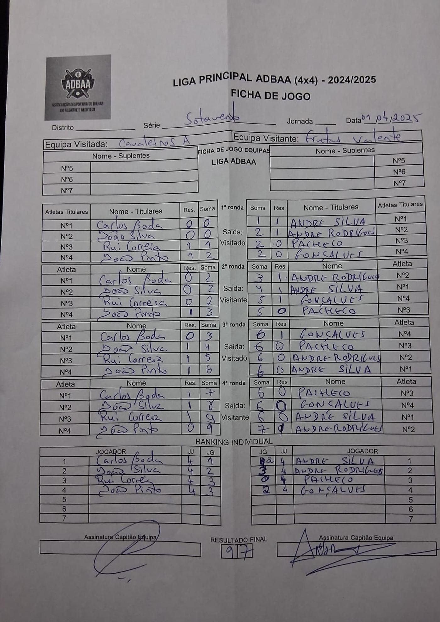 4 | 26 | CONVIVIO DOS CAVALEIROS A | 12-4 | CAP FARO | 05/11/2024 | <Sem observações> |