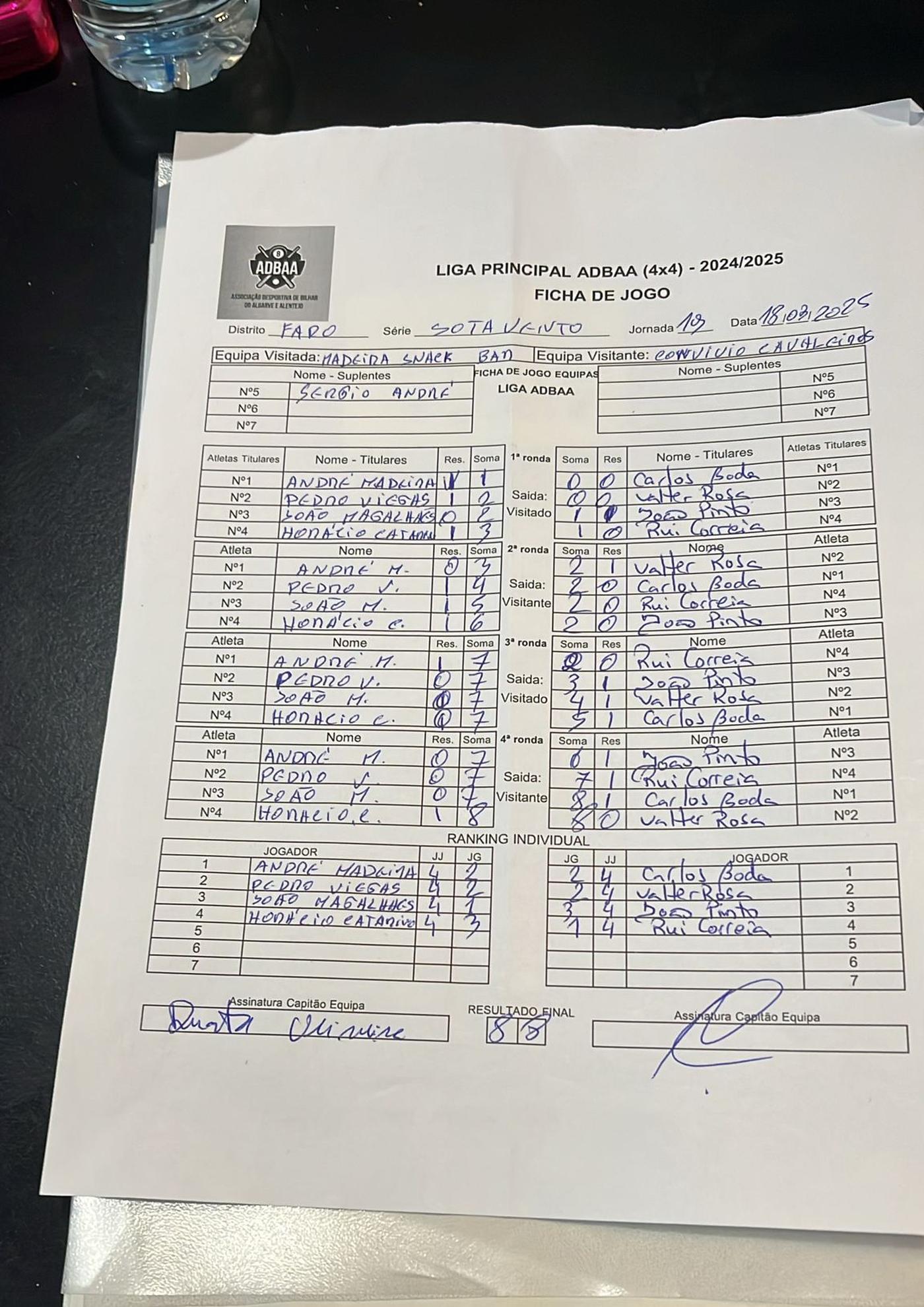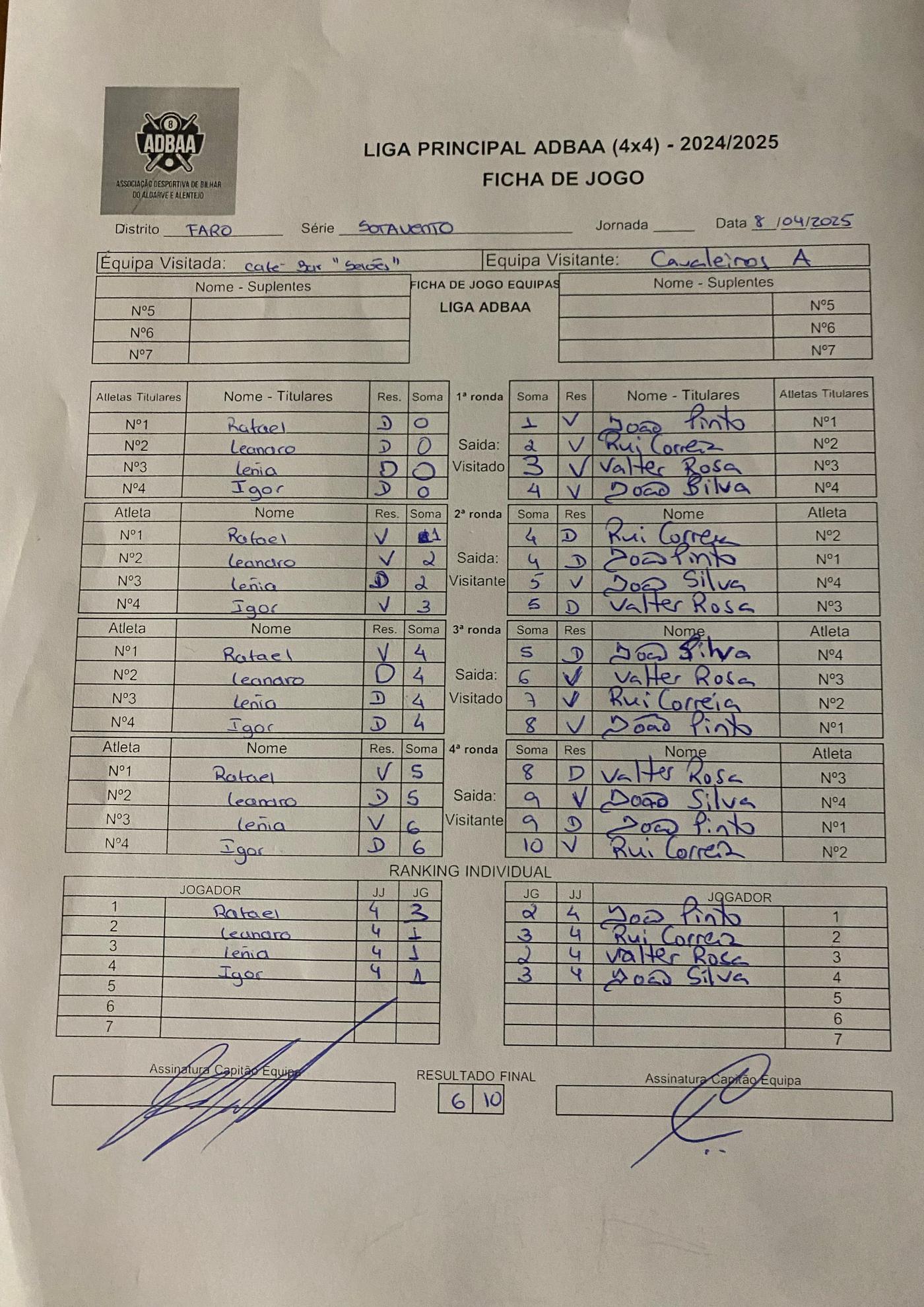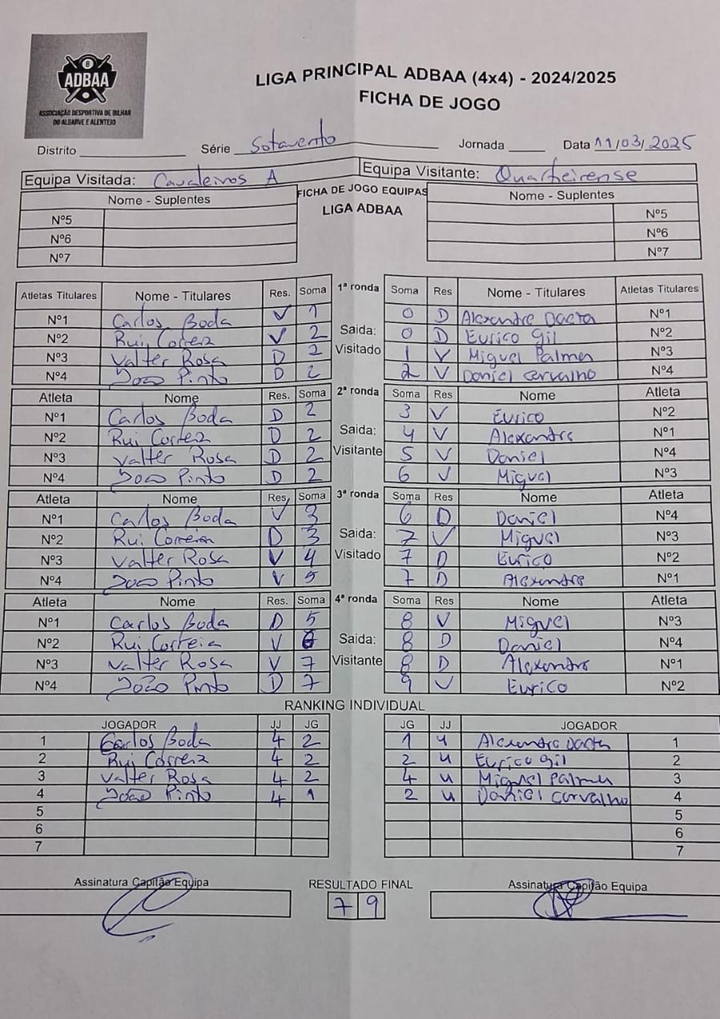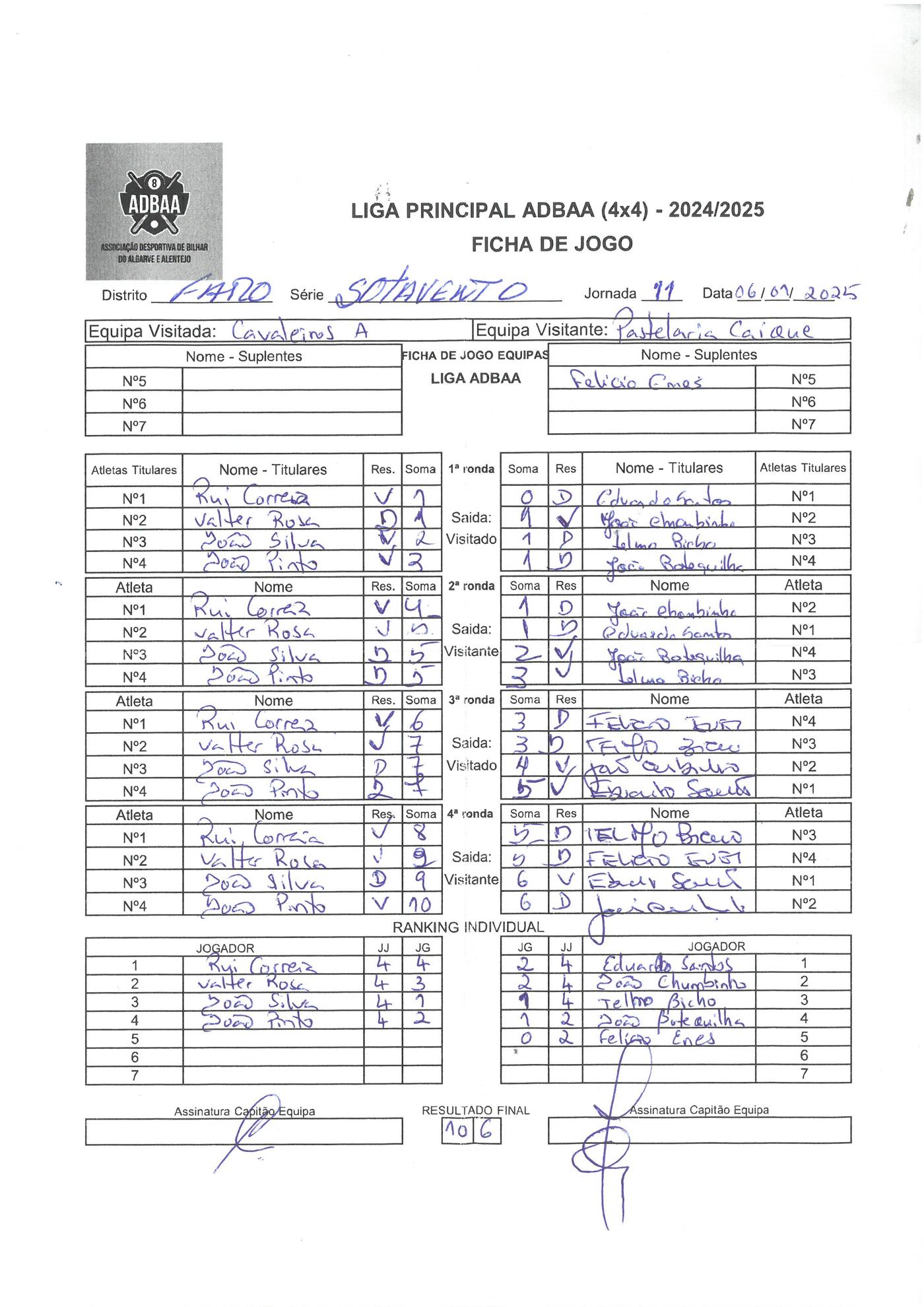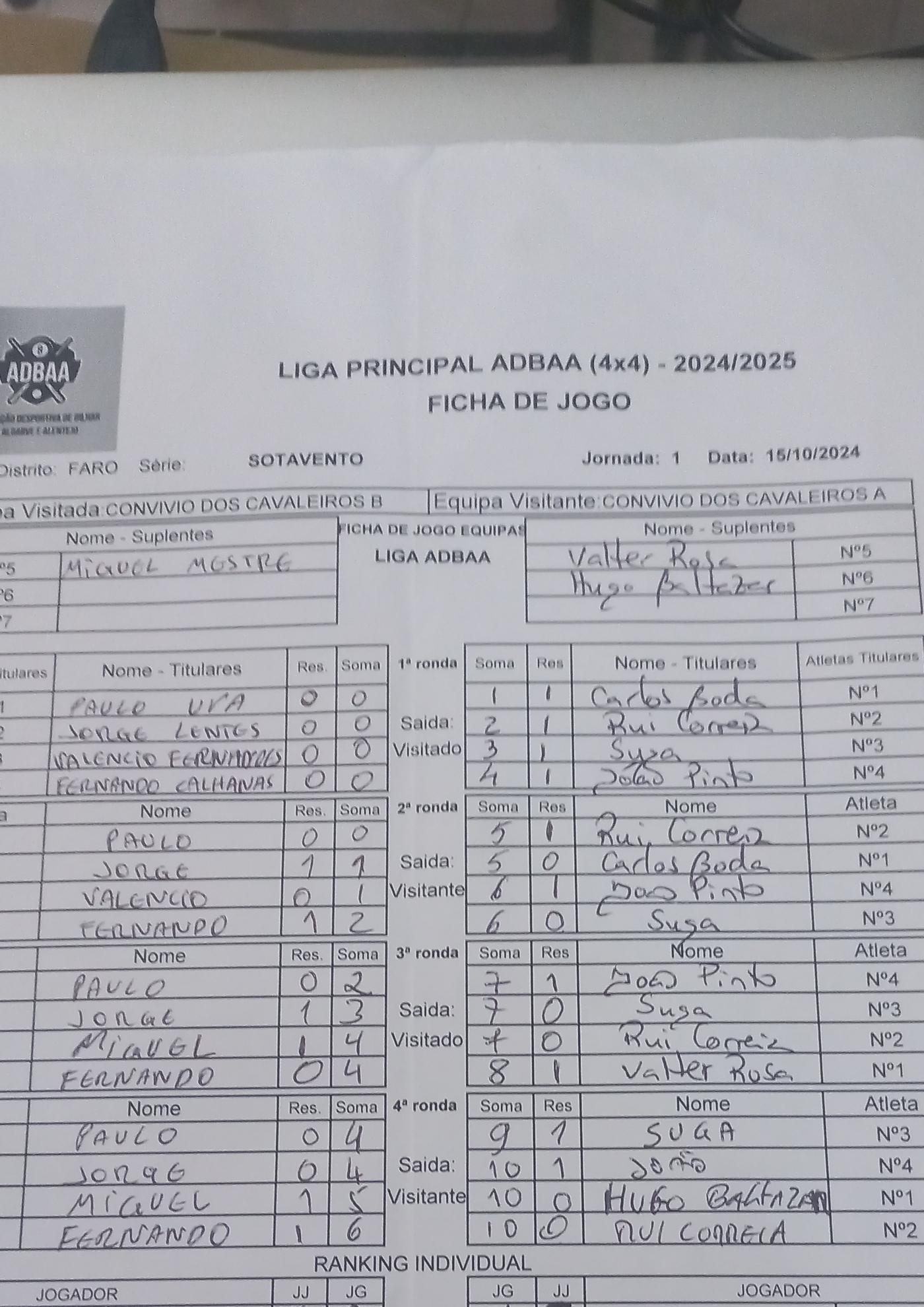 4 | 26 | CONVIVIO DOS CAVALEIROS A | 12-4 | CAP FARO | 05/11/2024 | <Sem observações> |