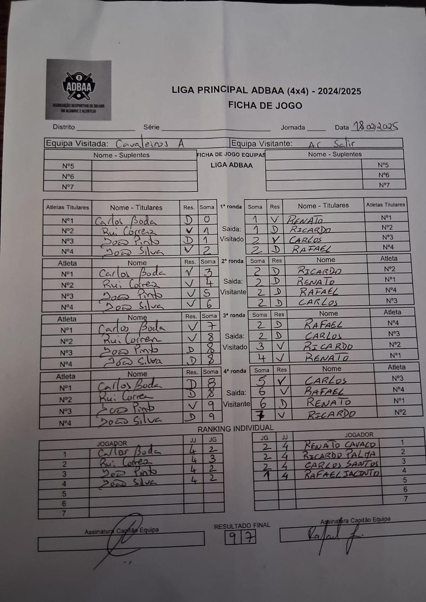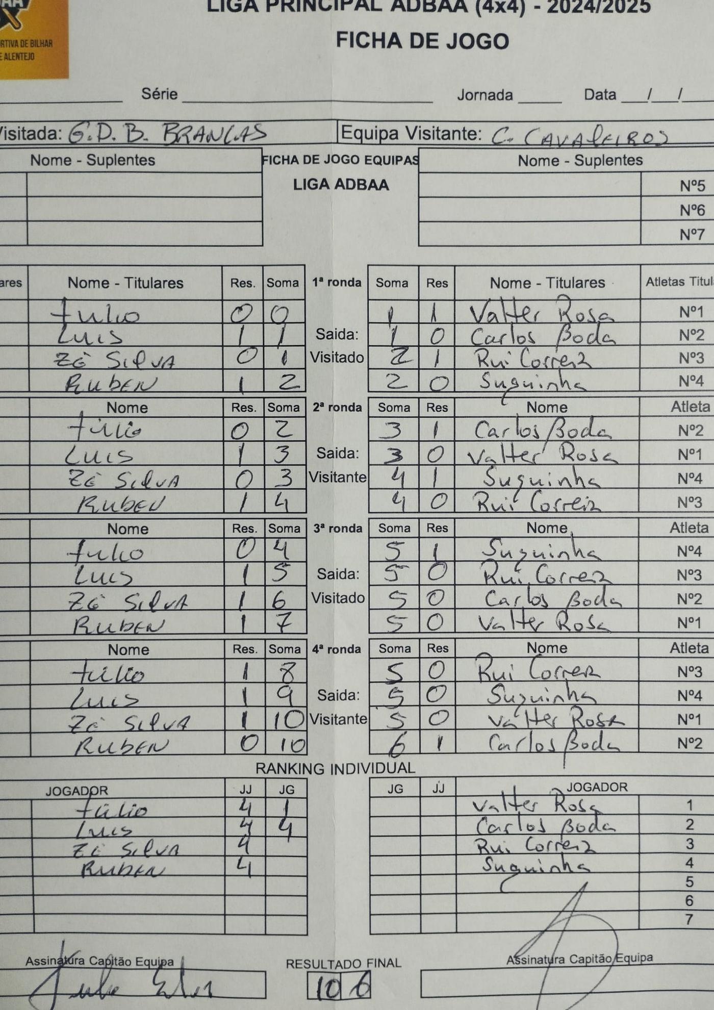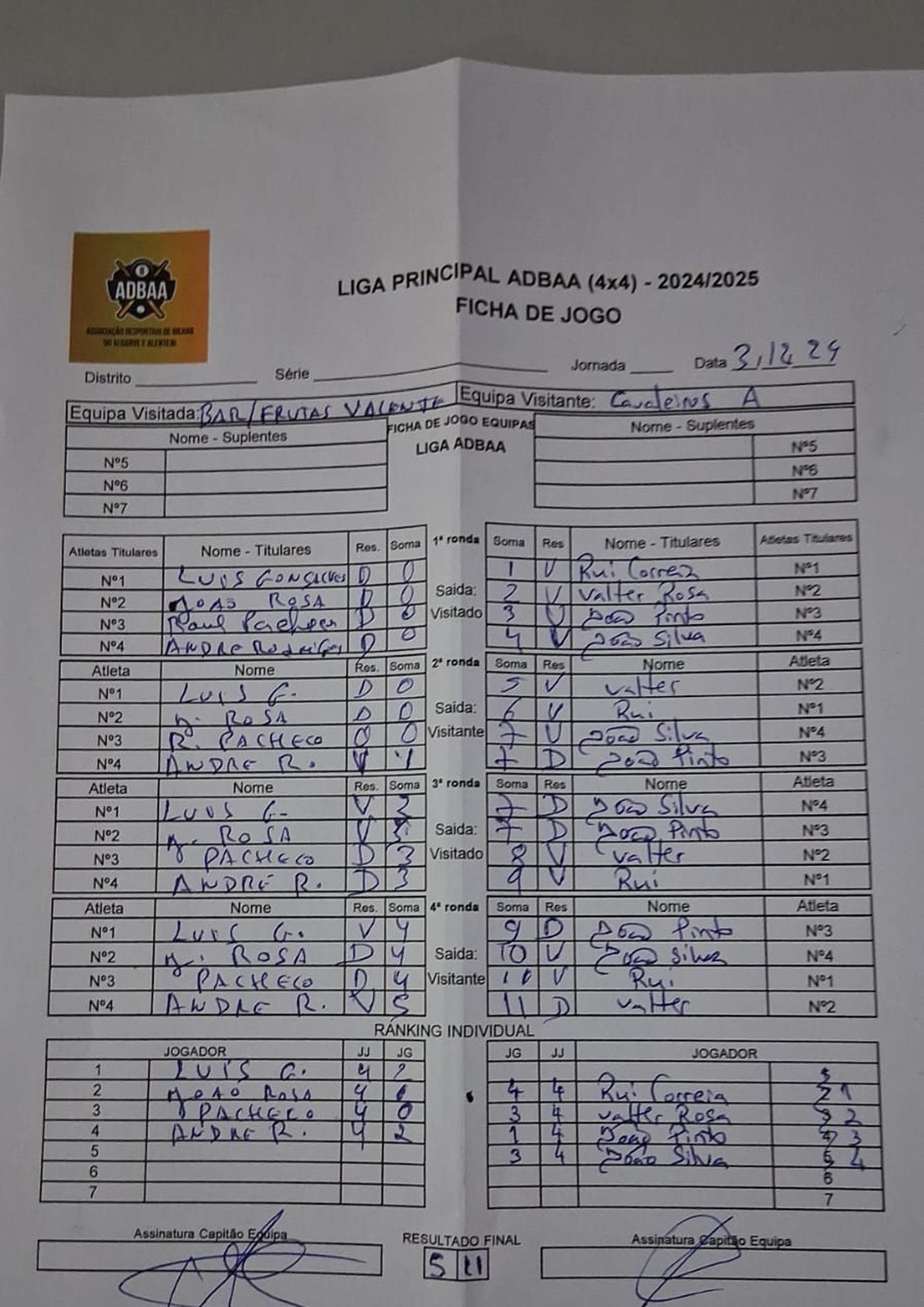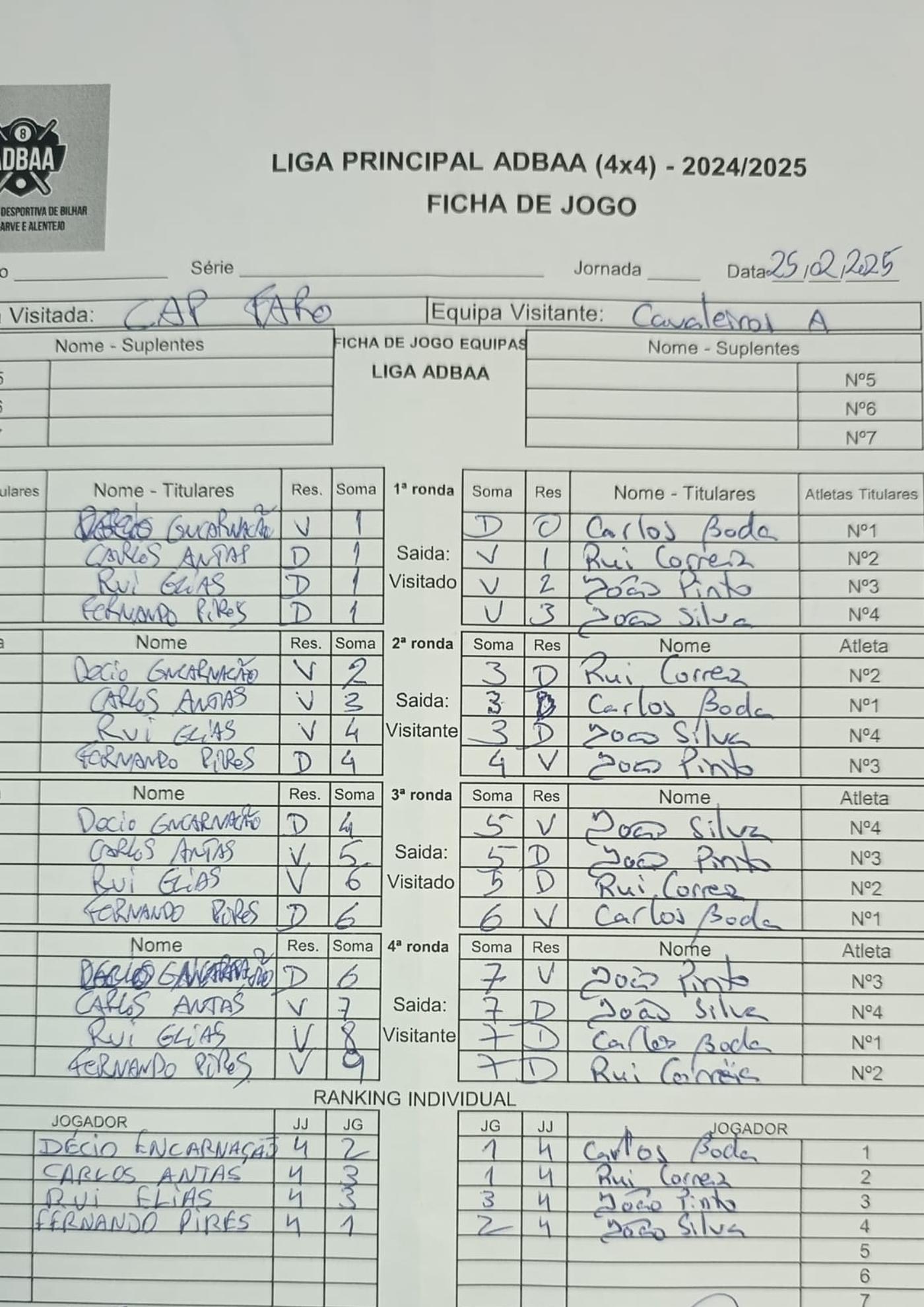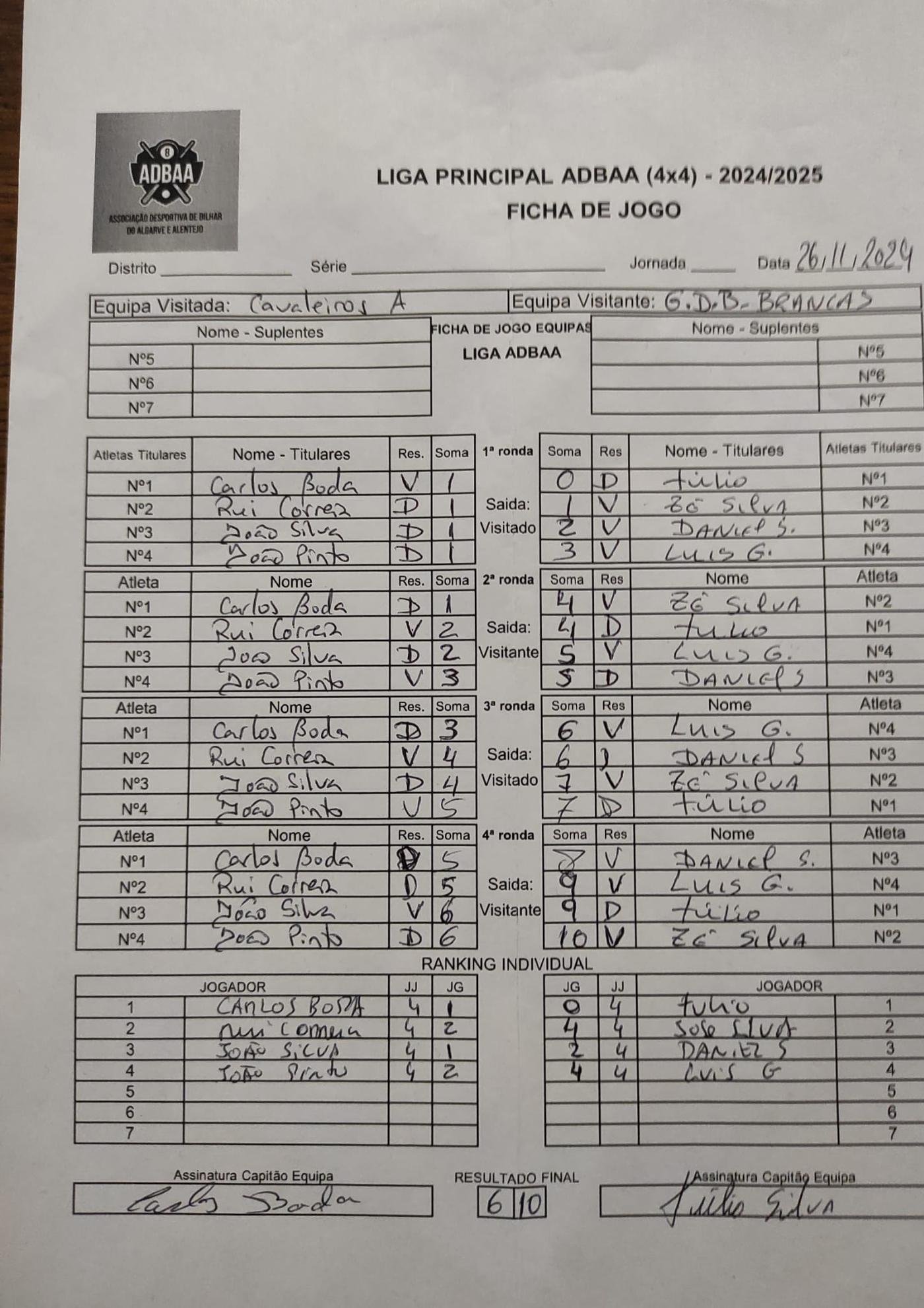 4 | 26 | CONVIVIO DOS CAVALEIROS A | 12-4 | CAP FARO | 05/11/2024 | <Sem observações> |