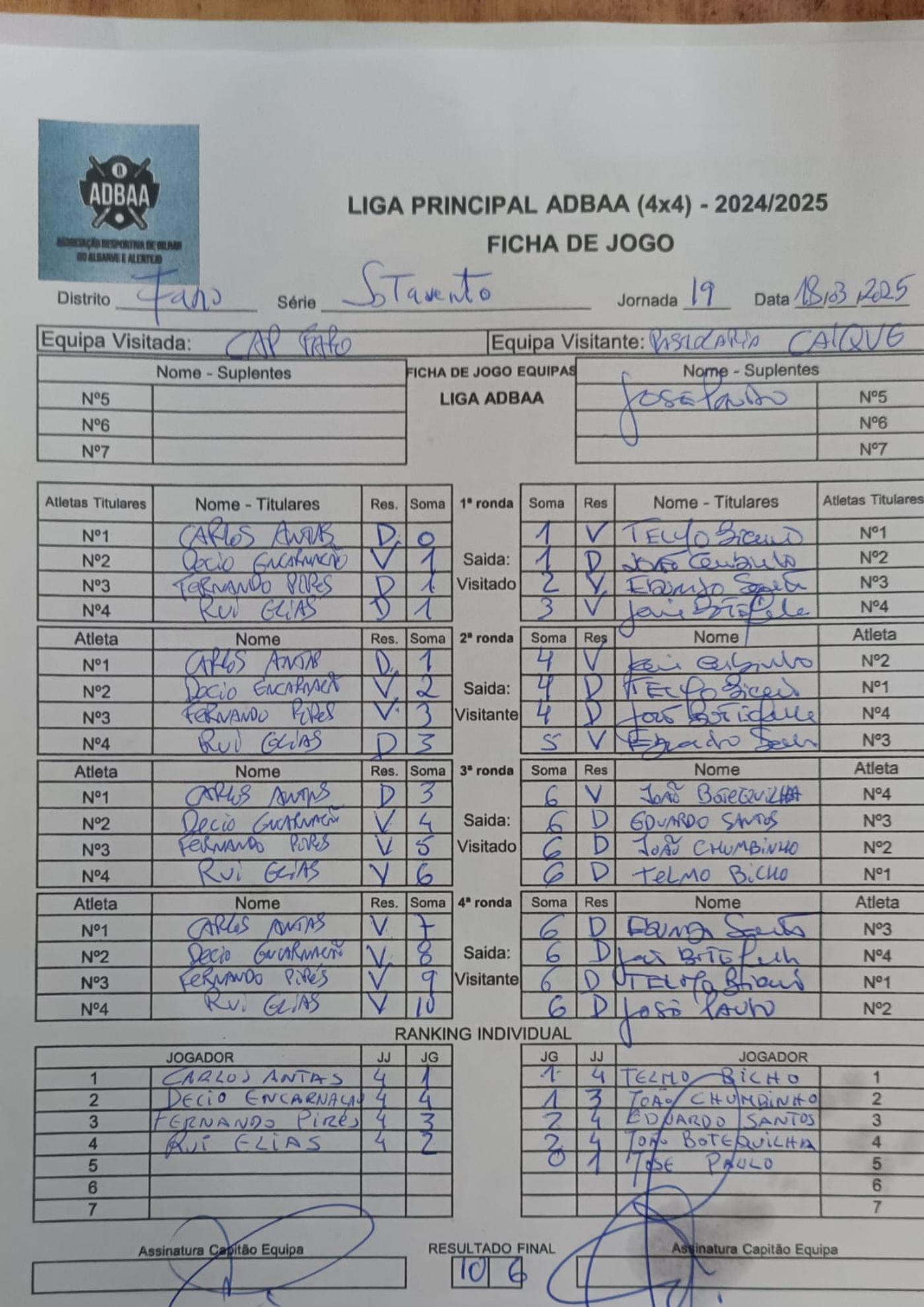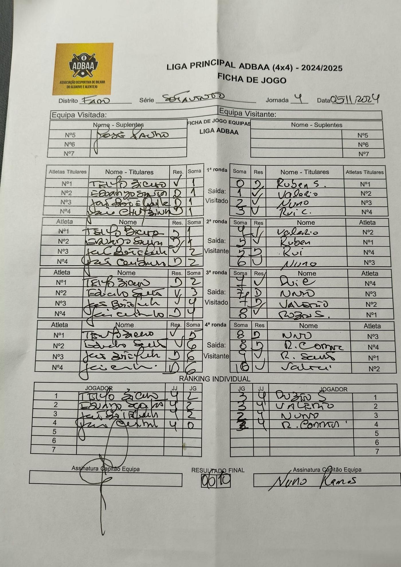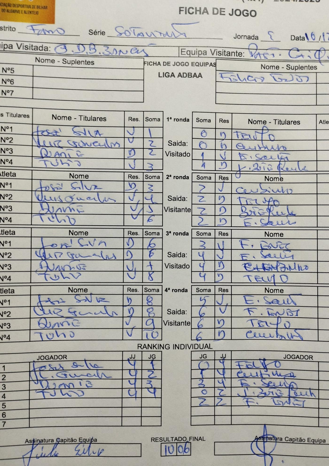9 | 61 | GRUPO DESPORTIVO BARREIRAS BRANCAS | 10-6 | PASTELARIA CAIQUE | 10/12/2024 | <Sem observações> |