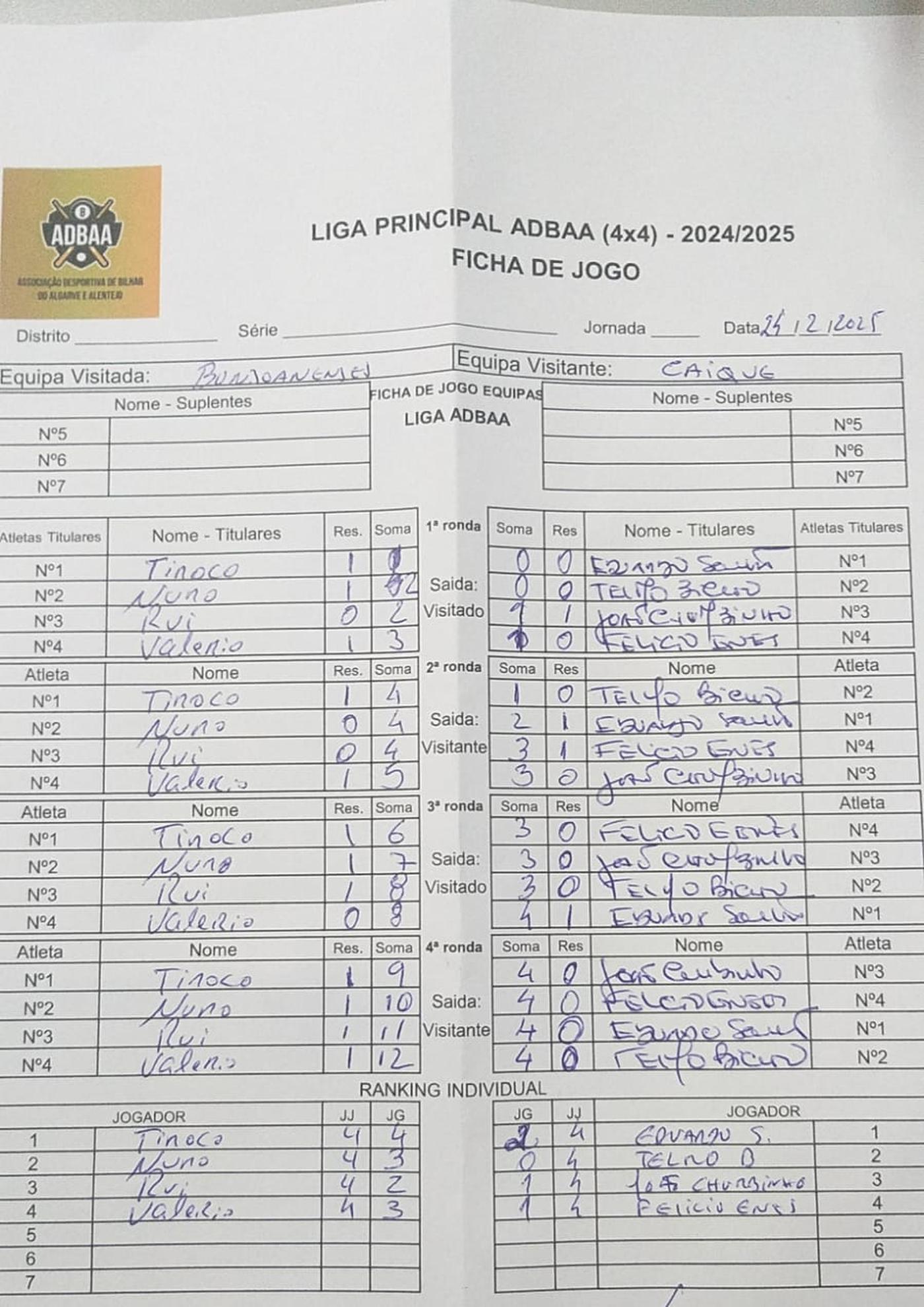 24 | 169 | PASTELARIA CAIQUE | 6-10 | CONVIVIO DOS CAVALEIROS A | 29/04/2025 | <Sem observações> |