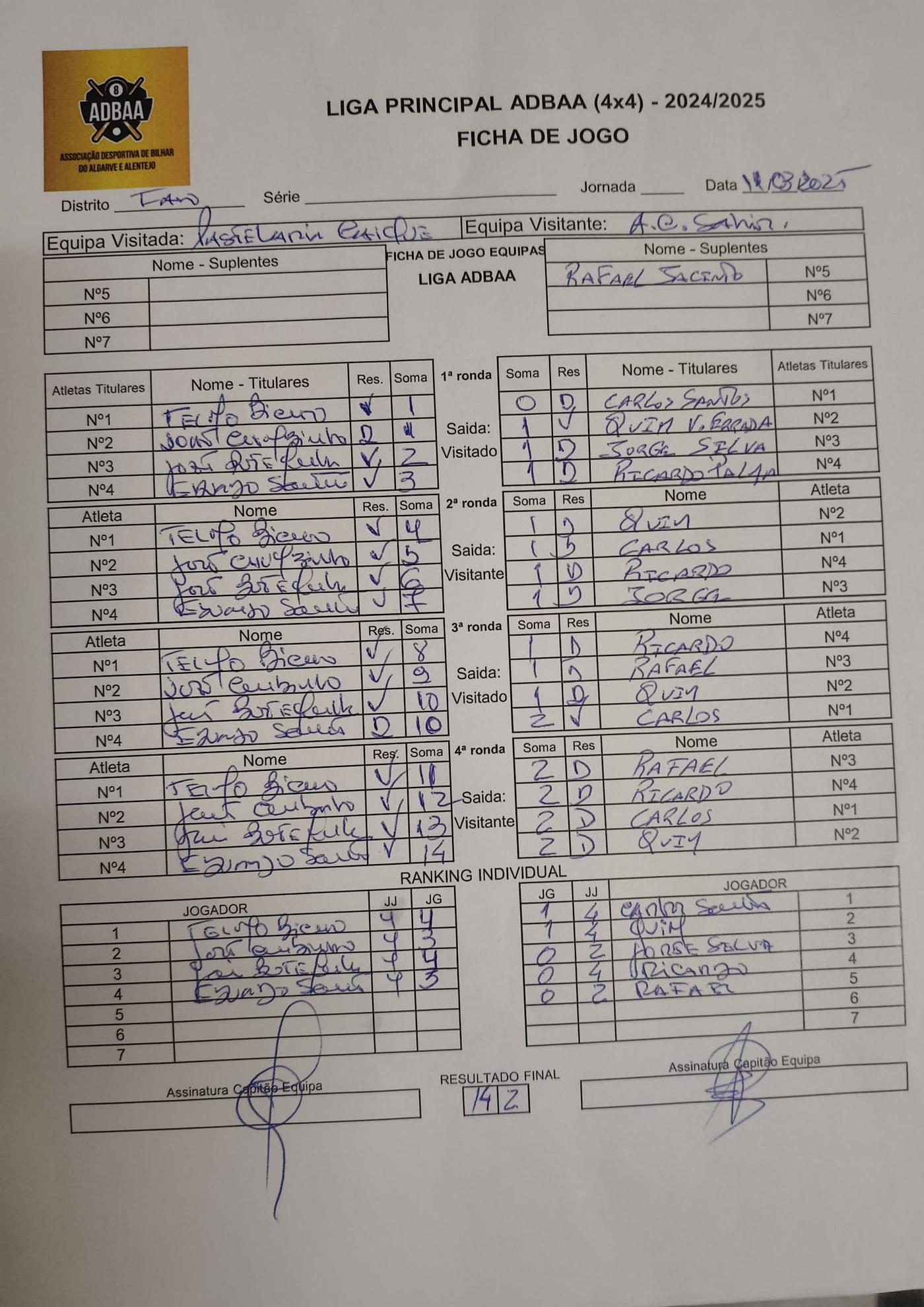 21 | 143 | MADEIRA SNACK BAR | 8-8 | PASTELARIA CAIQUE | 01/04/2025 | <Sem observações> |