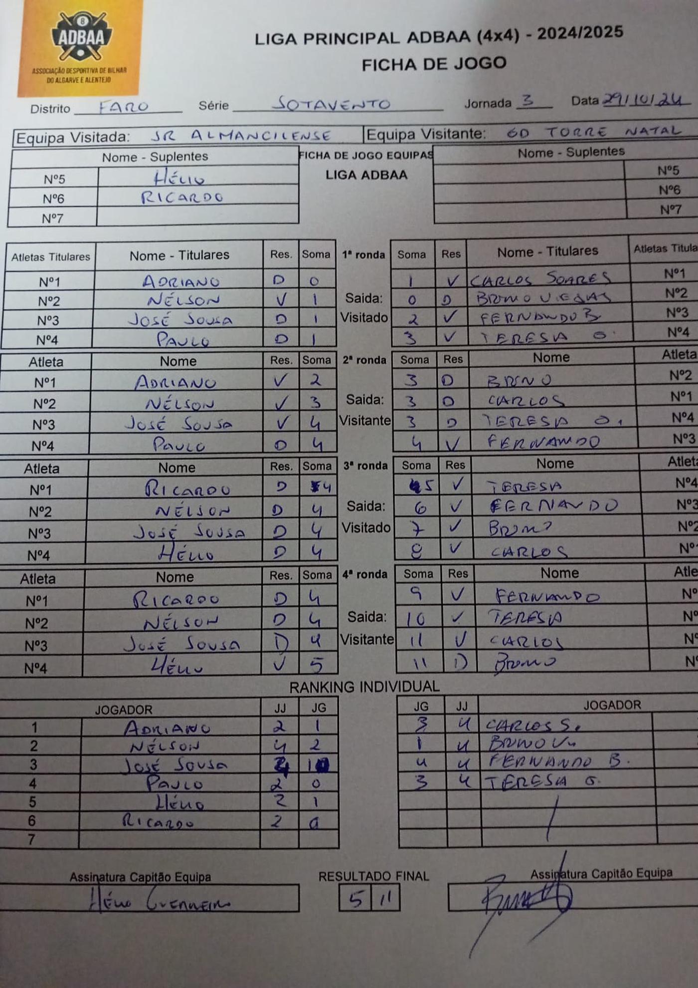 3 | 15 | SR ALMANCILENSE | 5-11 | GRUPO DESPORTIVO TORRE NATAL | 29/10/2024 | <Sem observações> |