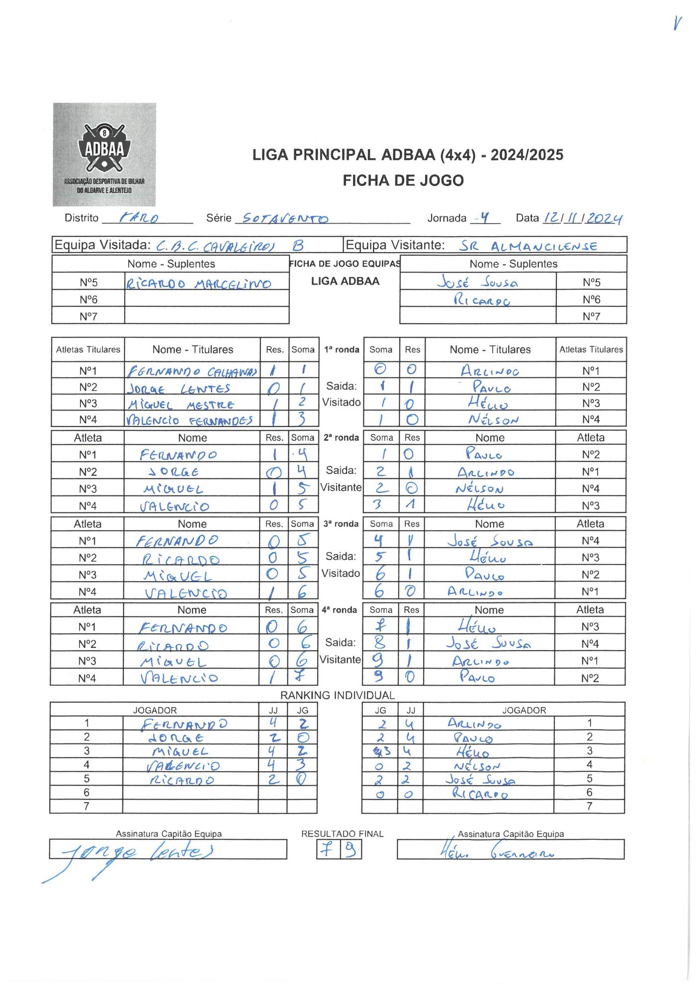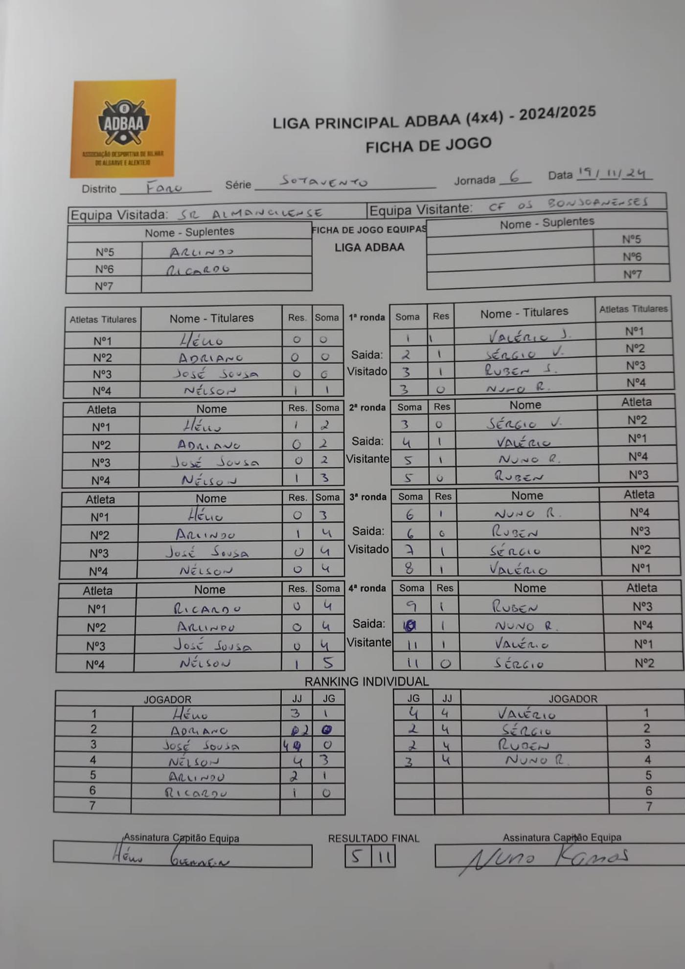 6 | 38 | SR ALMANCILENSE | 5-11 | CF OS BONJOANENSES | 19/11/2024 | <Sem observações> |