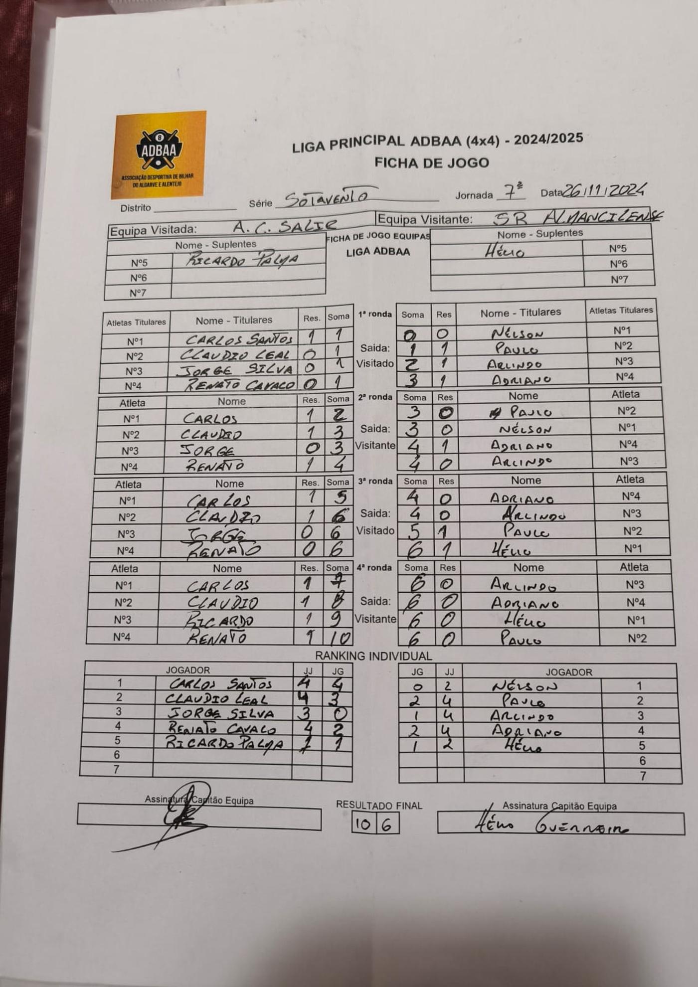 7 | 44 | ASSOCIAÇÃO CULTURAL DE SALIR | 10-6 | SR ALMANCILENSE | 26/11/2024 | <Sem observações> |