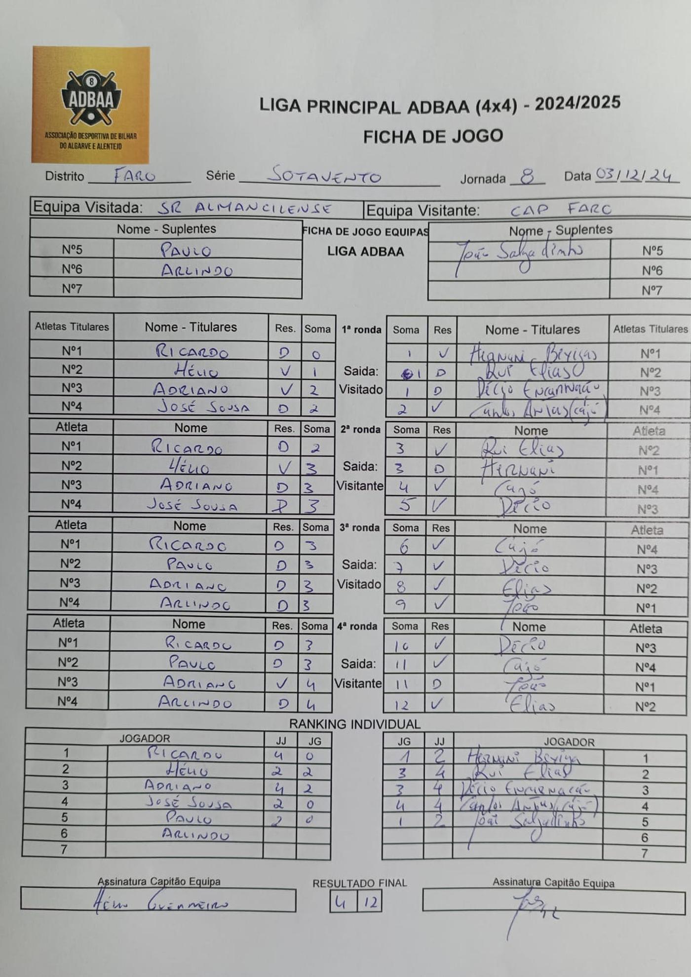 8 | 52 | SR ALMANCILENSE | 4-12 | CAP FARO | 03/12/2024 | <Sem observações> |