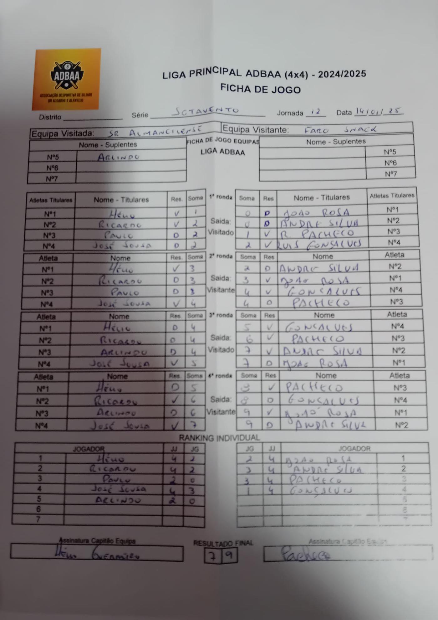 12 | 80 | SR ALMANCILENSE | 7-9 | FARO SNACK | 14/01/2025 | <Sem observações> |