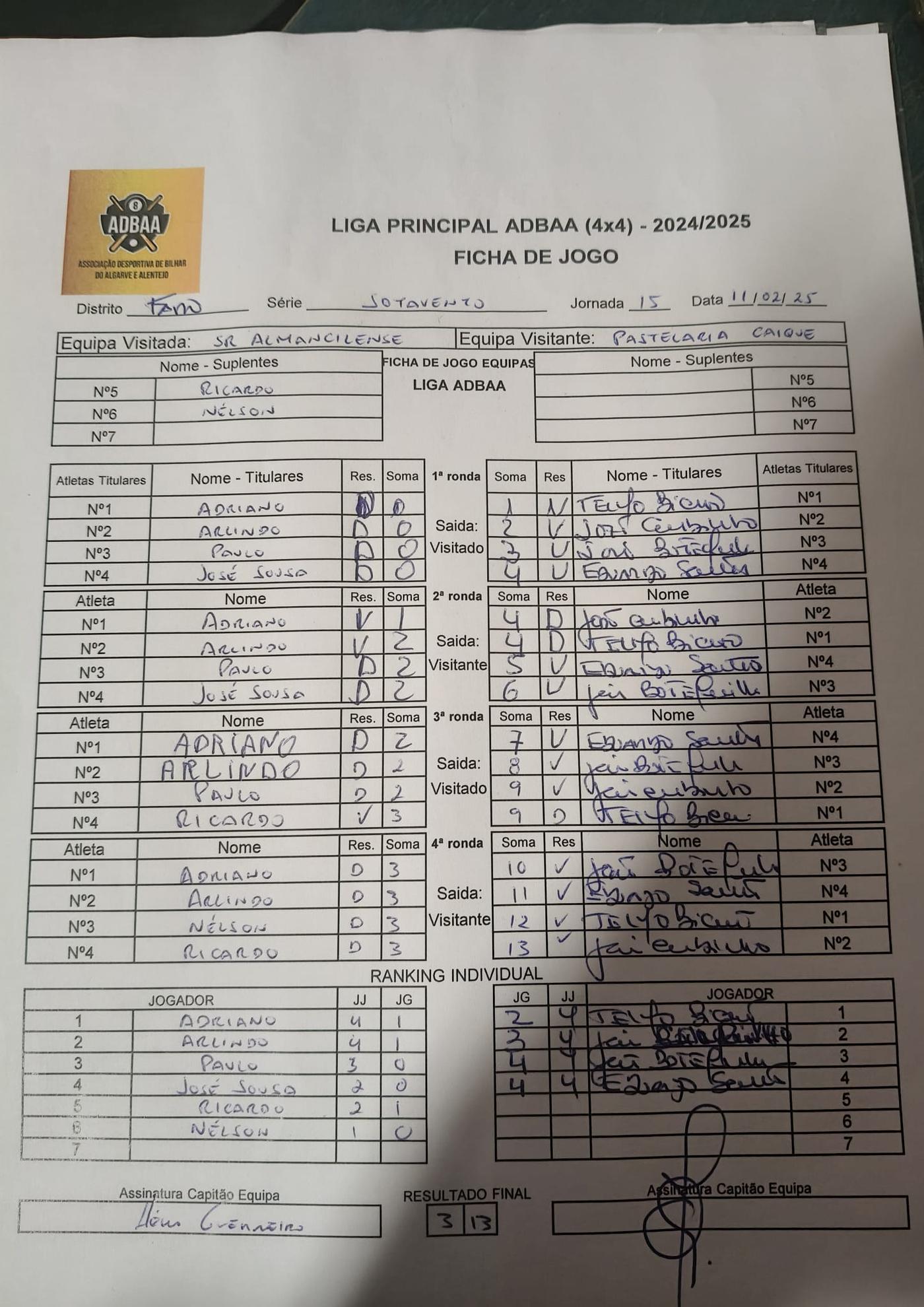 15 | 101 | SR ALMANCILENSE | 3-13 | PASTELARIA CAIQUE | 11/02/2025 | <Sem observações> |