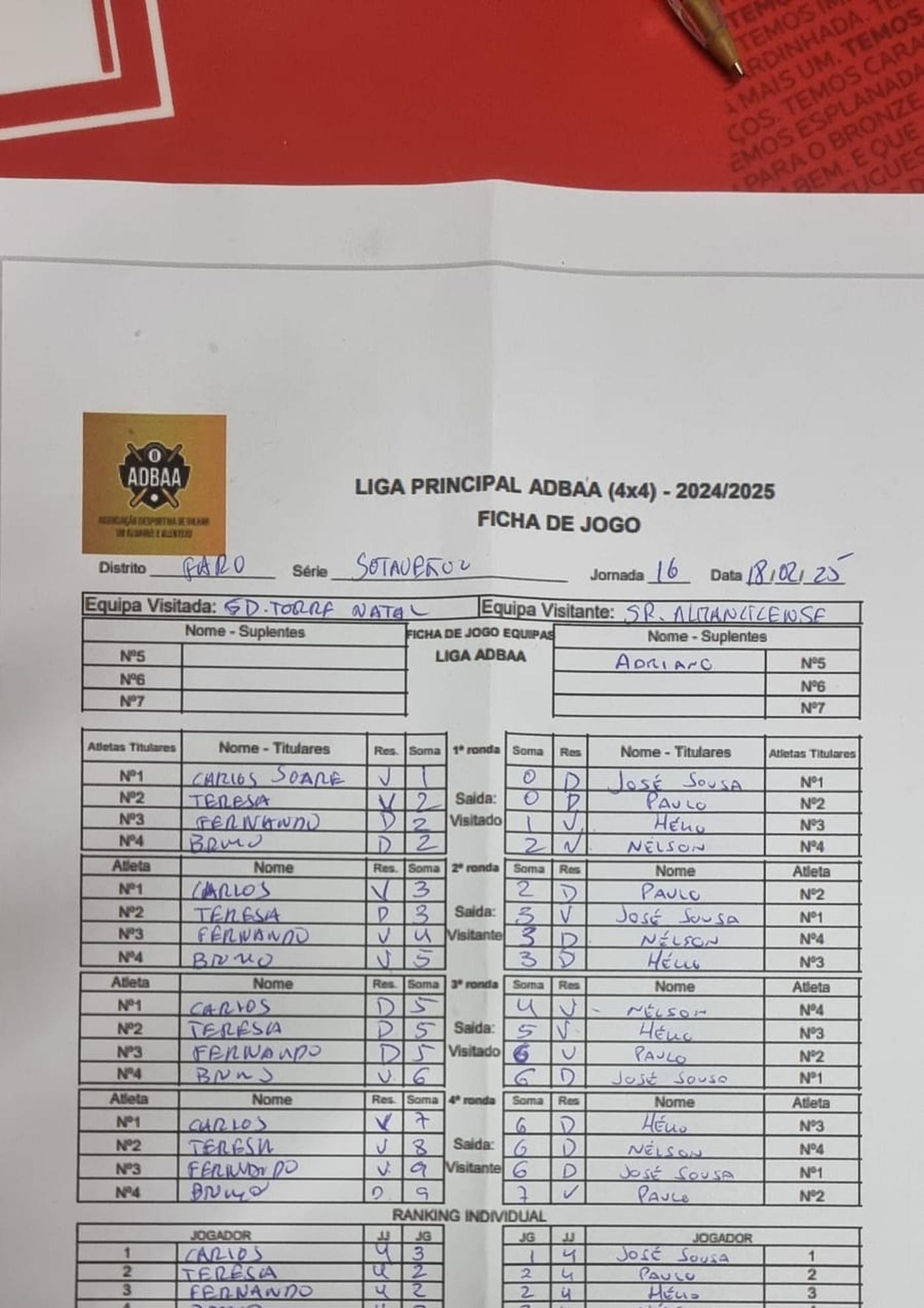 16 | 108 | GRUPO DESPORTIVO TORRE NATAL | 9-7 | SR ALMANCILENSE | 18/02/2025 | <Sem observações> |