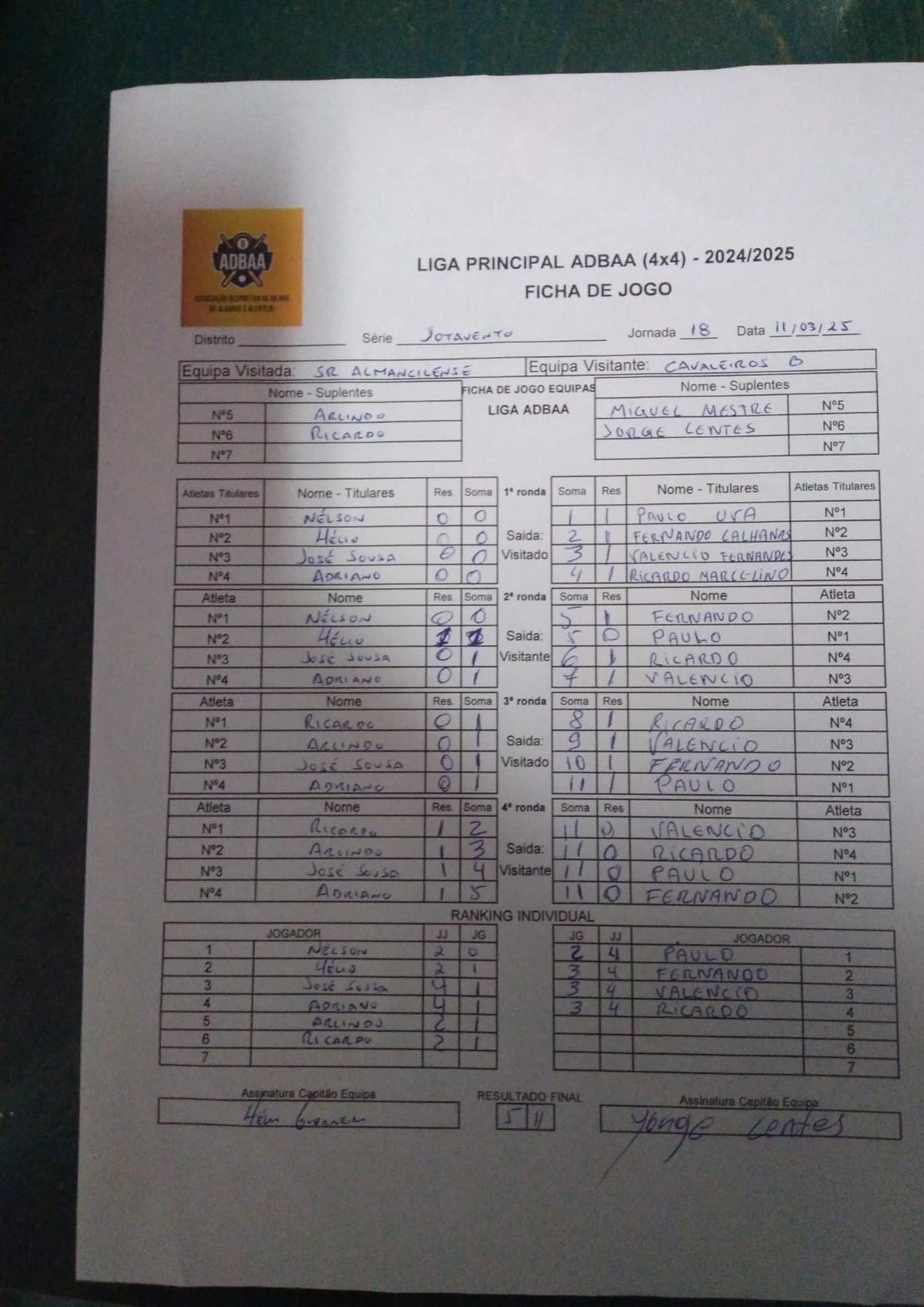 18 | 122 | SR ALMANCILENSE | 5-11 | CONVIVIO DOS CAVALEIROS B | 11/03/2025 | <Sem observações> |