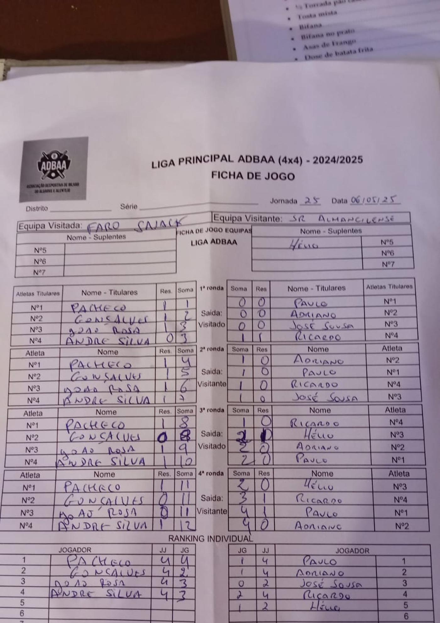 25 | 173 | FARO SNACK | 12-4 | SR ALMANCILENSE | 06/05/2025 | <Sem observações> |