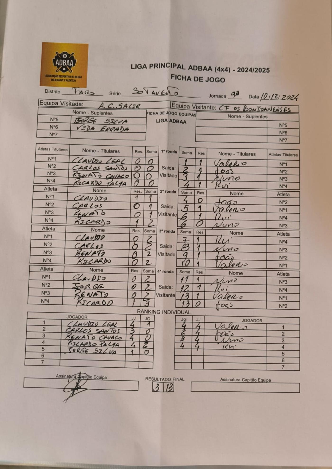 8 | 56 | BAR DOS SELÕES | 4-12 | CF OS BONJOANENSES | 03/12/2024 | <Sem observações> |