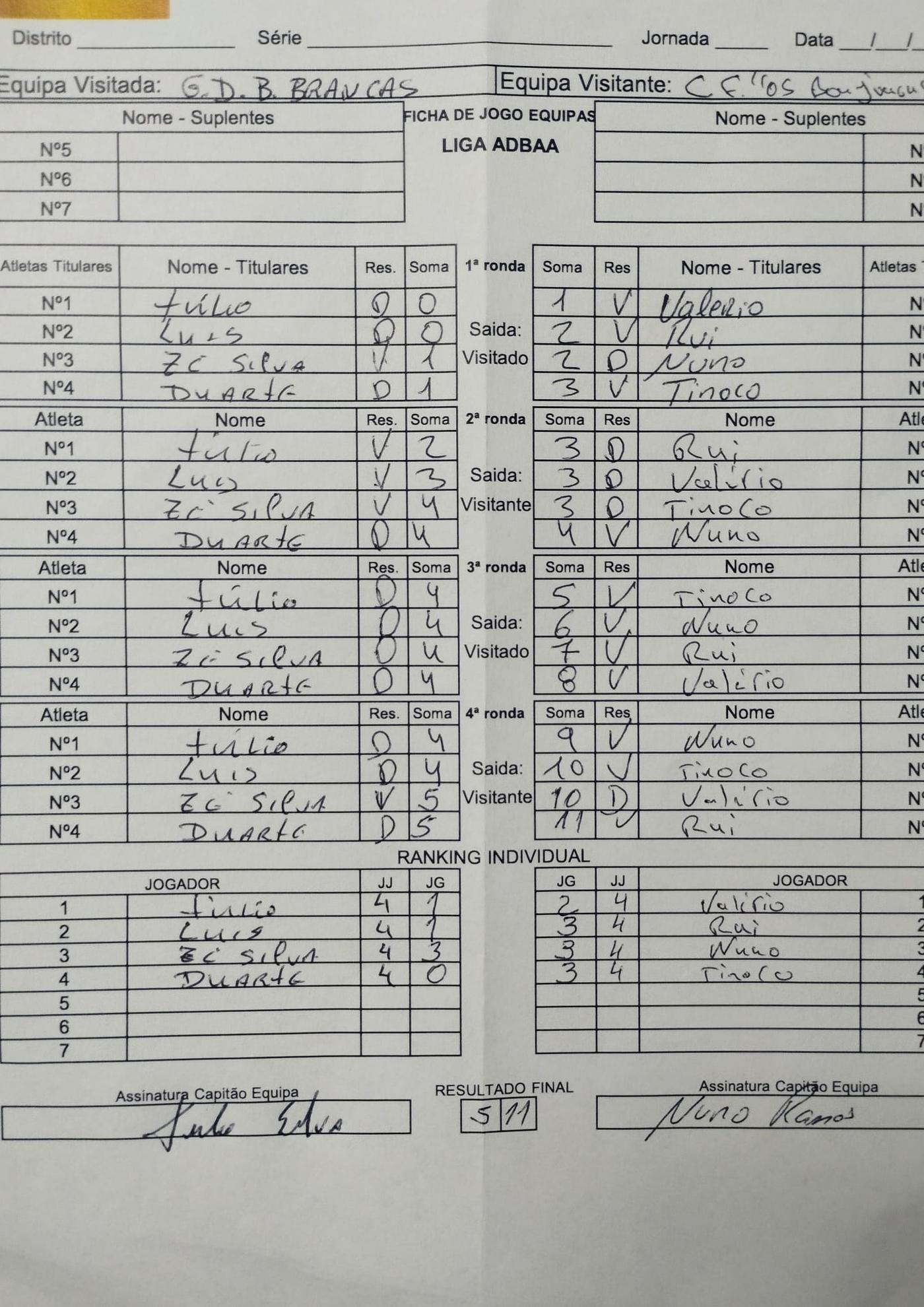 7 | 43 | CF OS BONJOANENSES | 11-5 | CONVIVIO DOS CAVALEIROS B | 25/11/2024 | <Sem observações> |