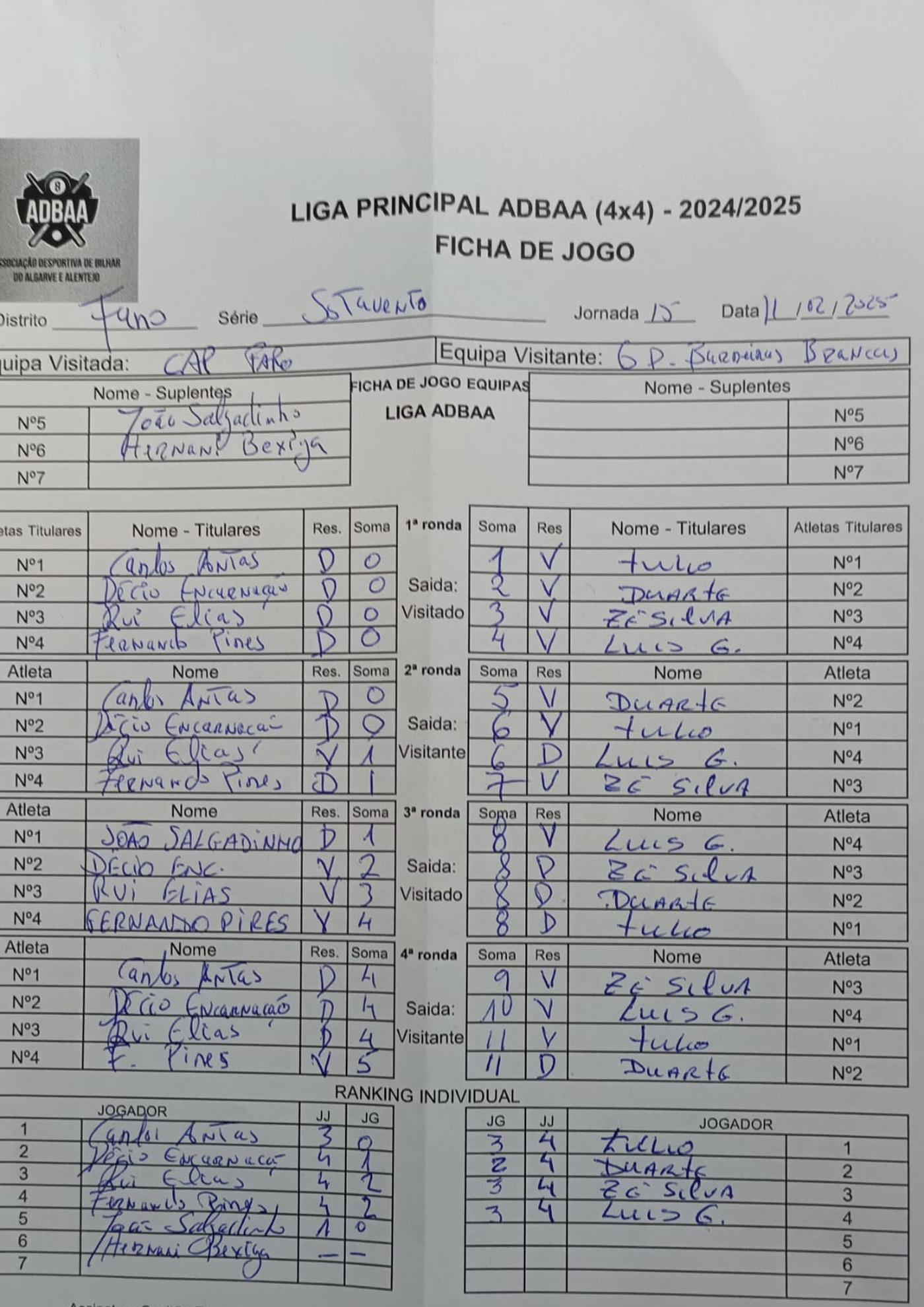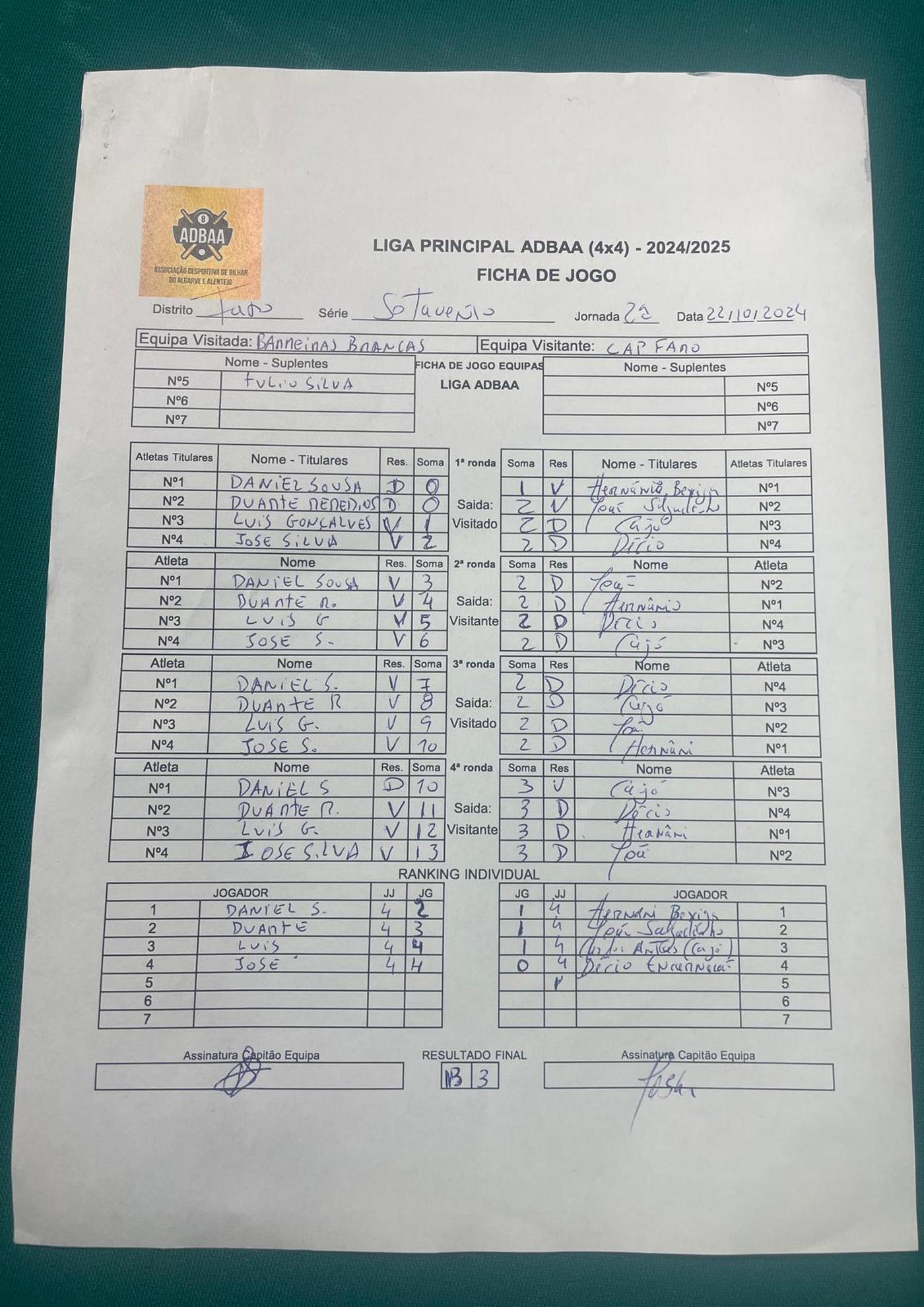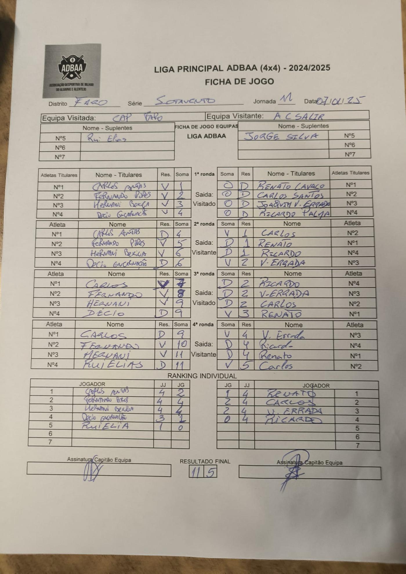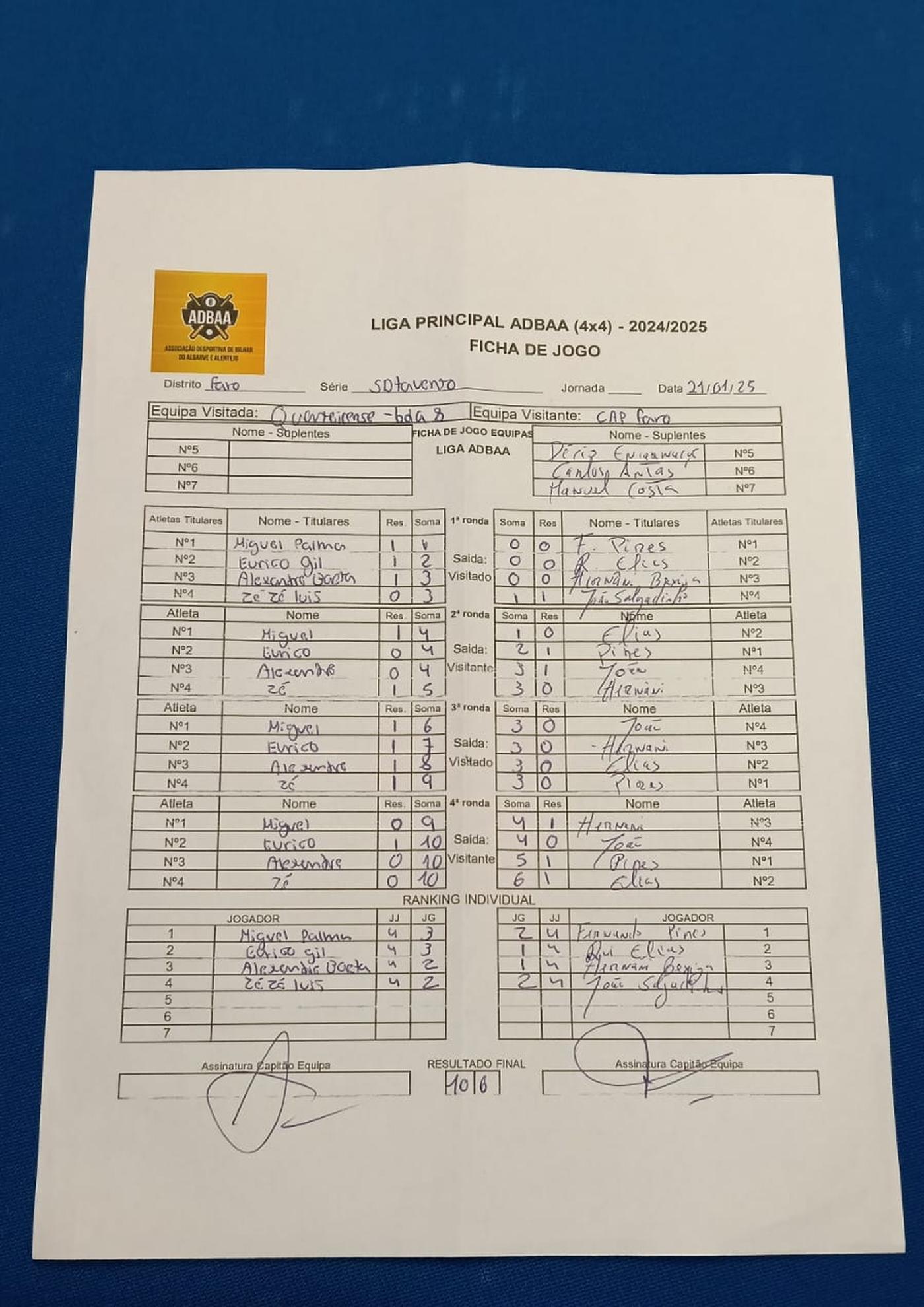 4 | 26 | CONVIVIO DOS CAVALEIROS A | 12-4 | CAP FARO | 05/11/2024 | <Sem observações> |